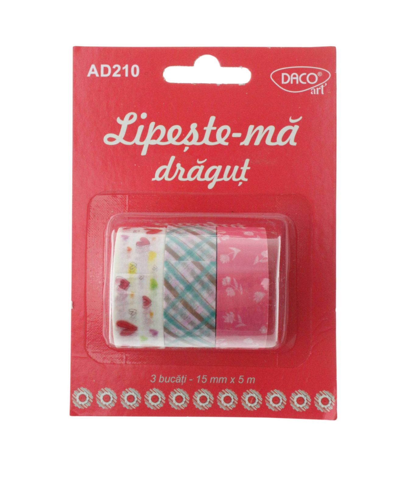 Setul contine 3 bucati banda adeziva imprimata, ideala pentru proiectele de lucru manual.Dimensiuni: 5 m x 1.5 cm