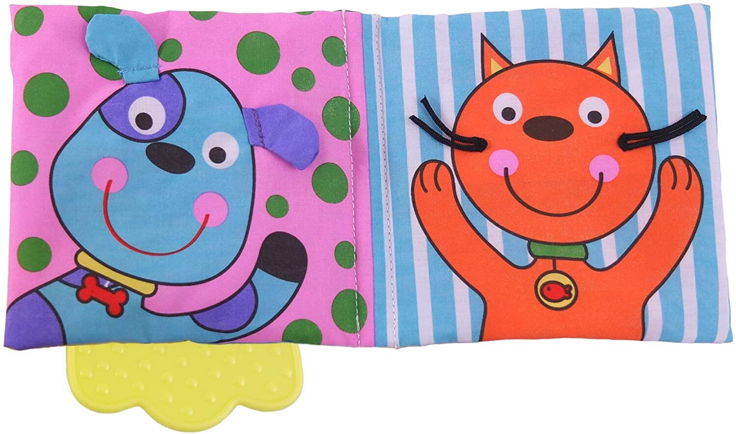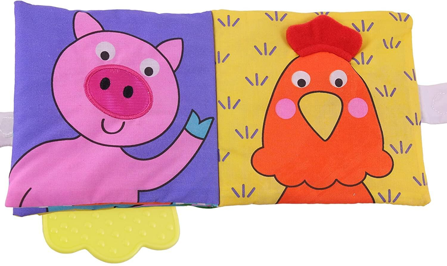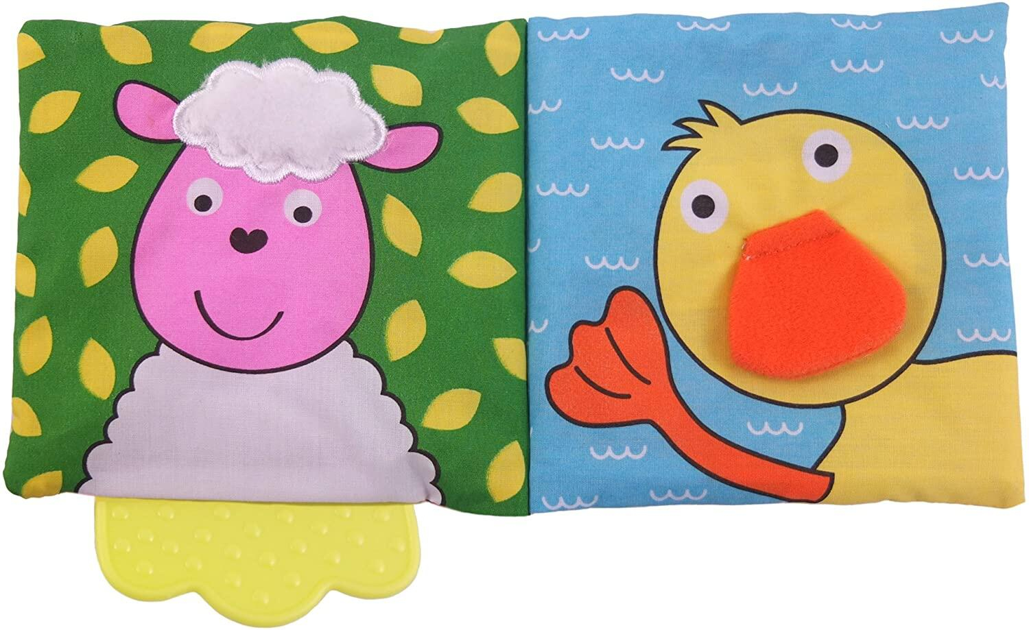 - Fabricata din materiale moi si sigure, aceasta carticica este perfecta pentru a calma gingiile celui mic si pentru a-i capta atentia cu paginile viu colorate si materialul fosnitor