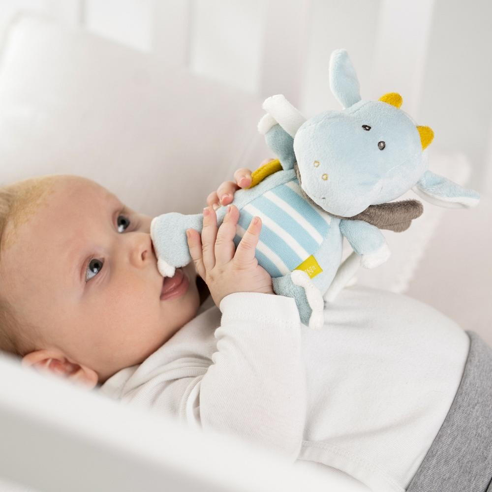 Mecanism muzical cu melodie de leagan: Jucaria dispune de un mecanism muzical care, atunci cand este declansat, va reda timp de 2 minute melodia de leagan „Schlaf Kindlein Schlaf“. Aceasta melodie blanda si relaxanta este perfecta pentru a ajuta copiii sa adoarma si sa se simta in siguranta.