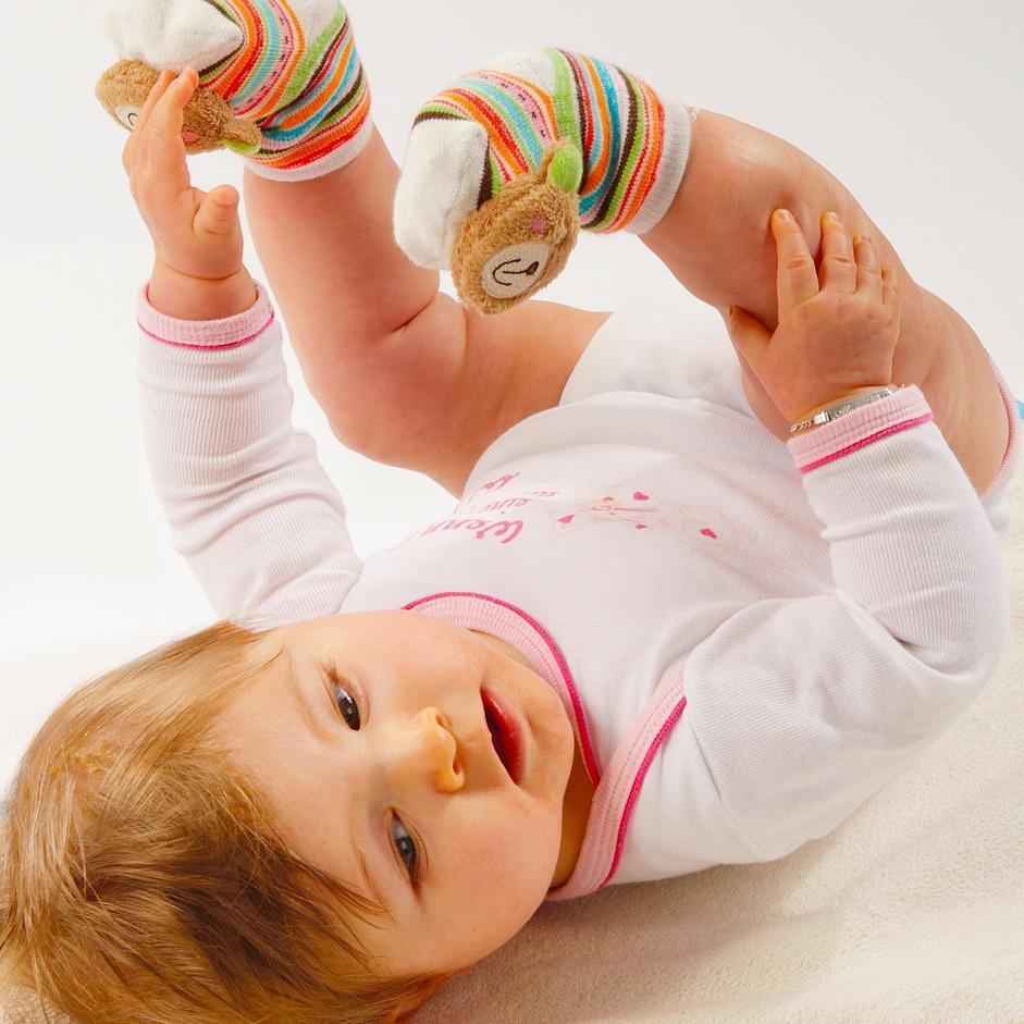 - sunetul produs atunci cand bebelusul da din picioare il incurajeaza sa continue sa descopere si sa se joace