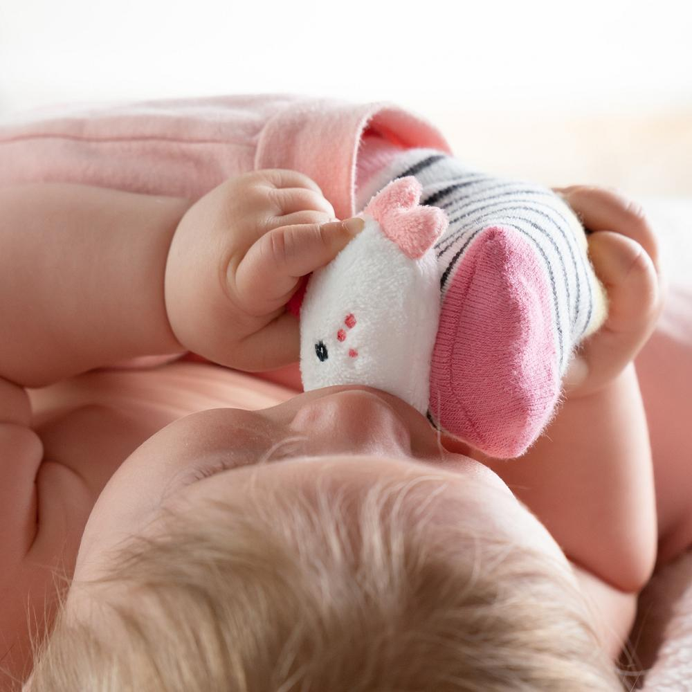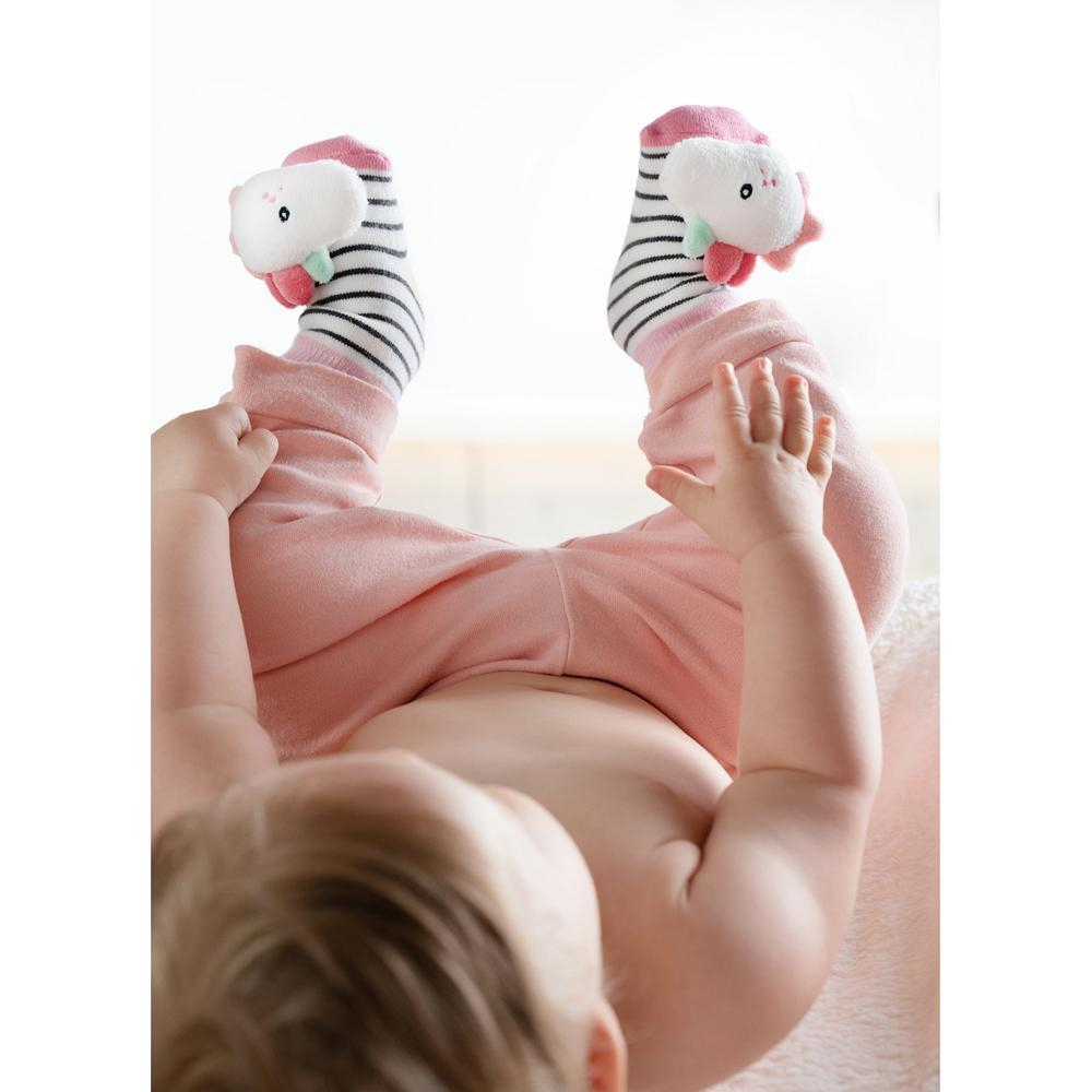 Sosetele vesele - Unicorn zornaie atunci cand bebelusul da din picioruse, este o jucarie educativa si distractiva care stimuleaza simturile si dezvolta coordonarea motorie a micutului