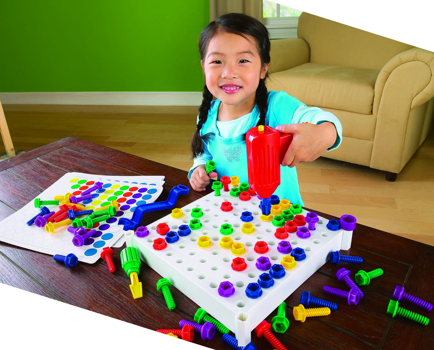 Creativitatea si construitul se impletesc perfect in acest set care stimuleaza micutii sa realizeze modele colorate si ingenioase pe tabla de joc.