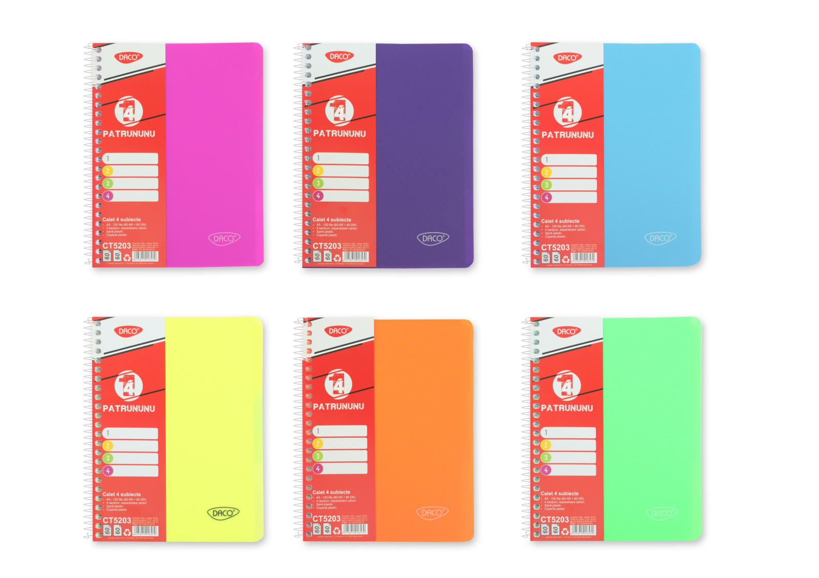 Caiet A5, 120 file (60 AR + 60 DR) cu microperforatii pentru rupere.Tip legatura: spirala plasticCoperta: plastic