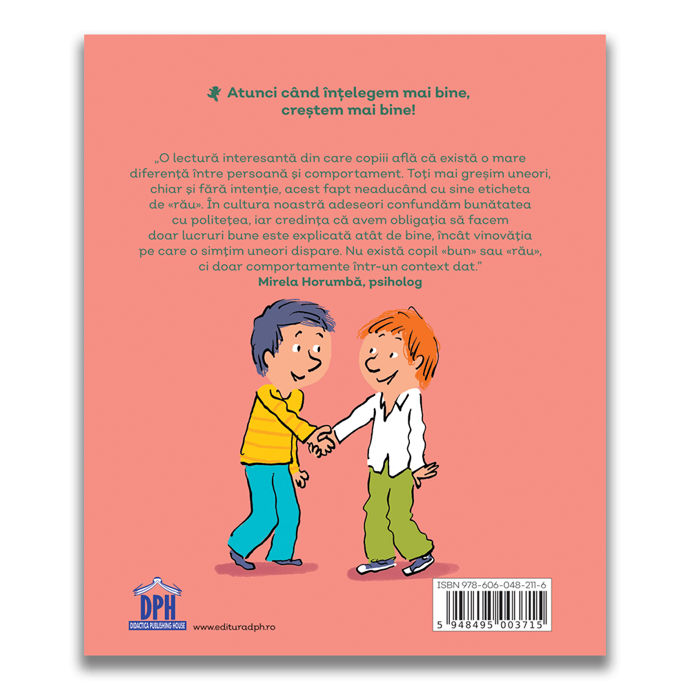 O lectura interesanta din care copiii afla ca exista o mare diferenta intre persoana si comportament. Toti mai gresim uneori, chiar si fara intentie, acest fapt neaducand cu sine eticheta de “rau”. Nimeni nu este complet rau sau dragut, dar oricine poate sa faca rau sau sa spuna lucruri fara sa-si dea seama, depinde de moment.