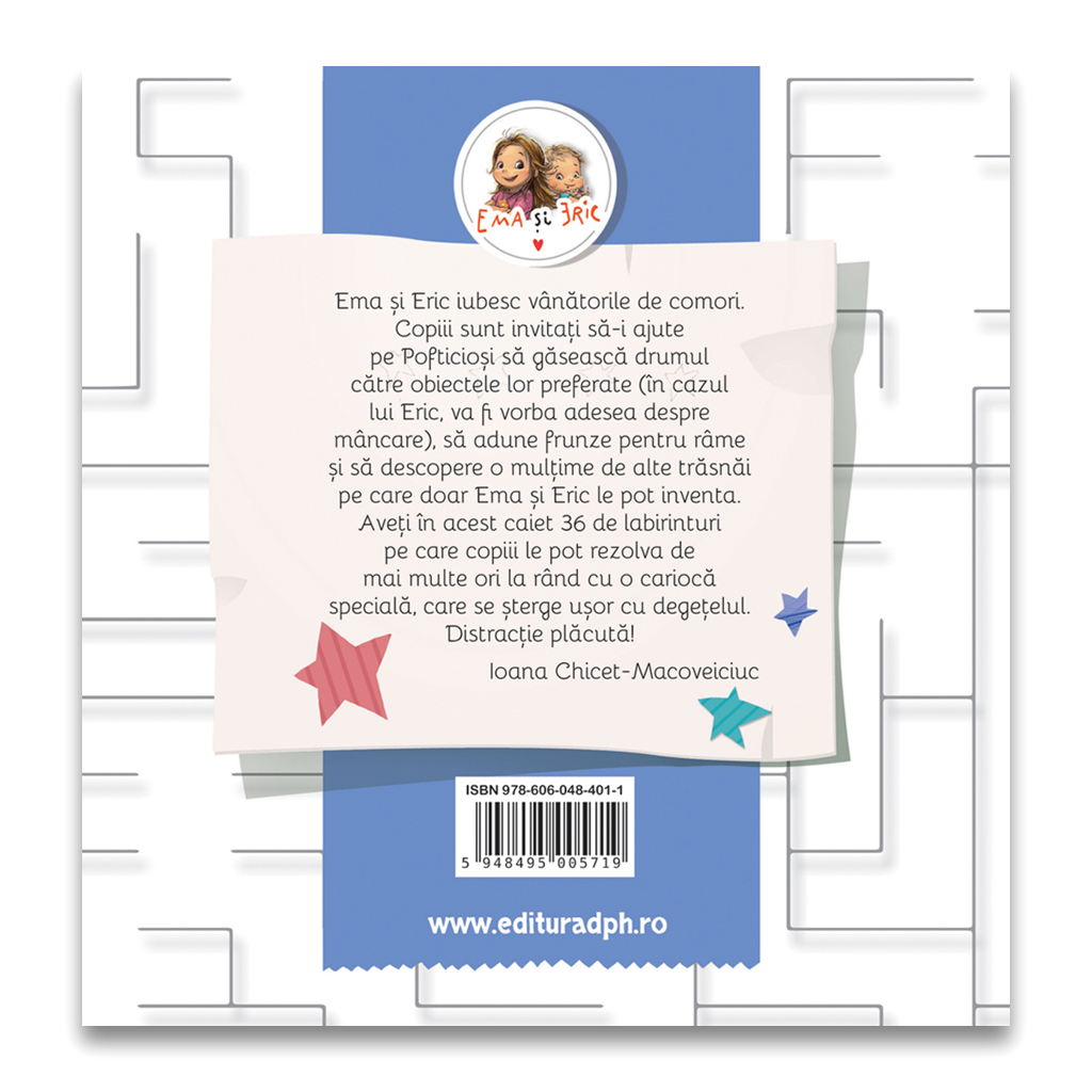 Labirinturi cu Ema si Eric provoaca toti copiii cu varstele peste 3 ani sa-i ajute pe cei doi Pofticiosi sa gaseasca drumul spre obiectele lor preferate.