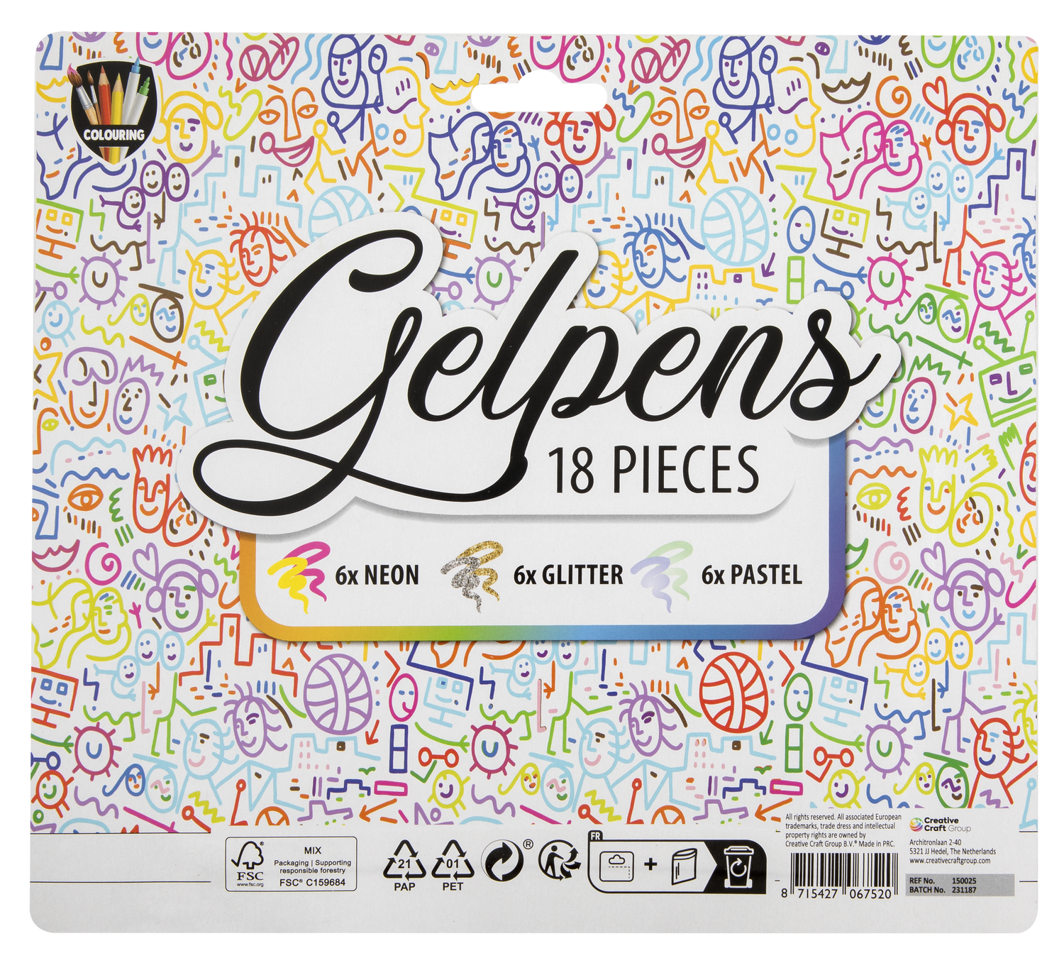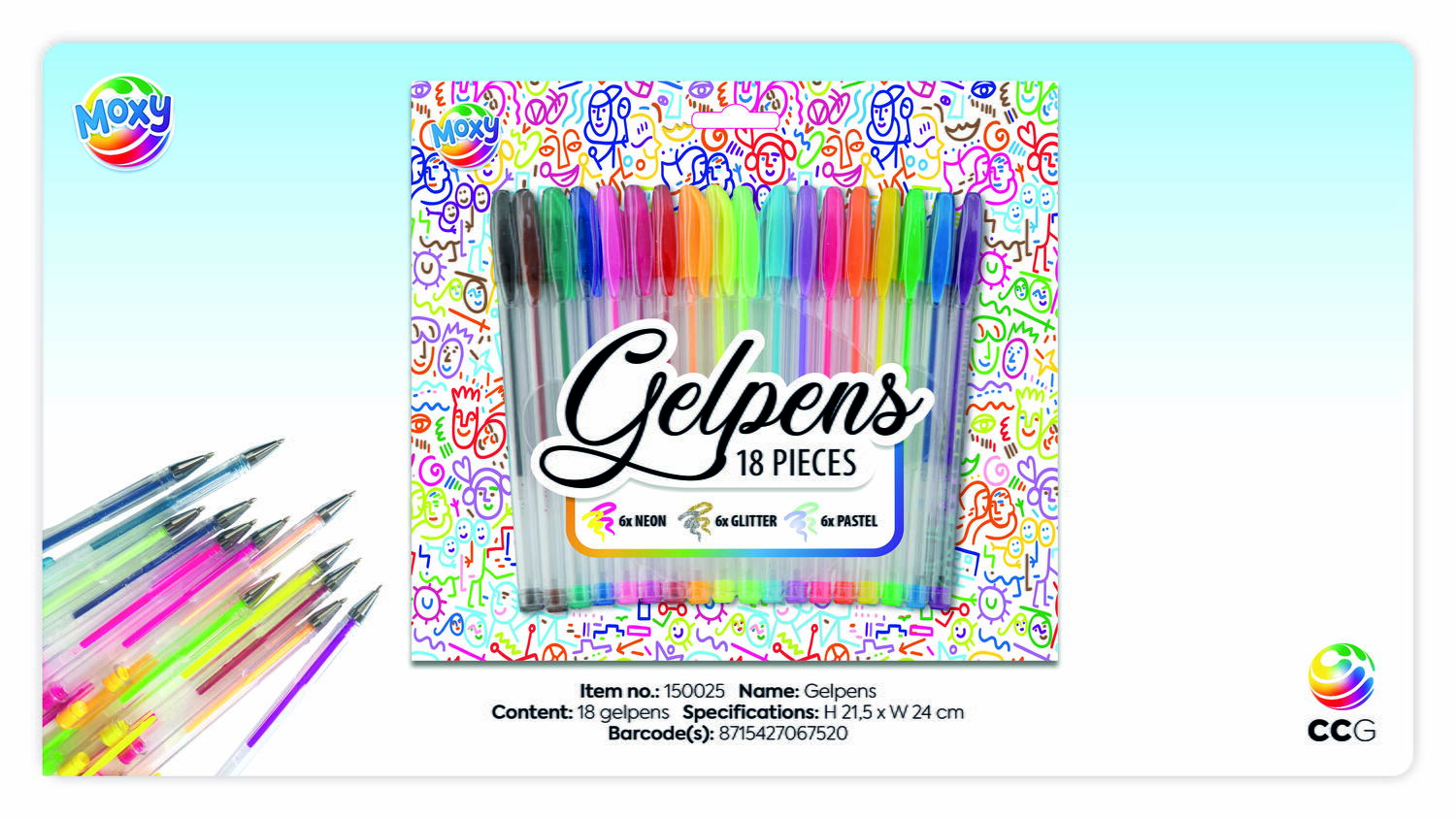 - acest set cuprinde 18 pixuri cu gel de inalta calitate, fiecare avand o nuanta vibranta si intensa