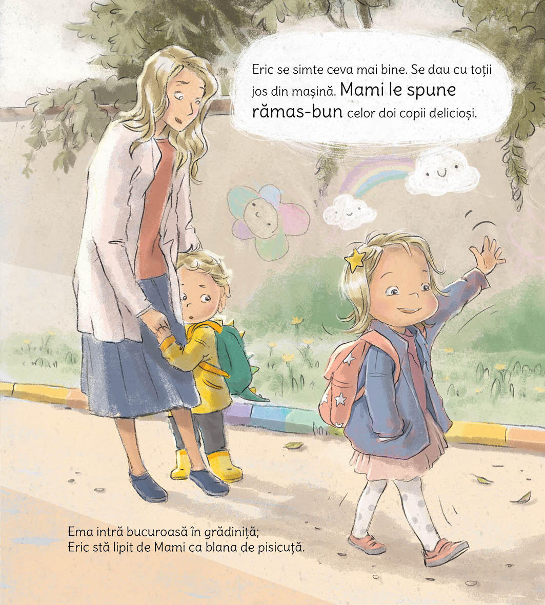Eric merge pentru prima data la gradinita si este putin temator fiindca nu stie cum se va descurca fara mami si tati. Pentru el gradinita este un loc nou, plin de oameni si lucruri noi, in care trebuie sa manance si sa doarma si care miroase diferit fata de casa lui. Dar, de curand, a primit doua arme secrete si pretioase care il ajuta sa gaseasca in el curajul, increderea si in cele din urma bucuria de a se descurca de unul singur la gradinita.