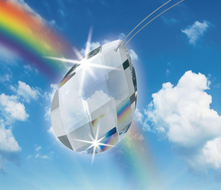- include un cristal, care pozitionat pe timpul zilei in fereastra insorita, va proiecta mici curcubeie prin camera