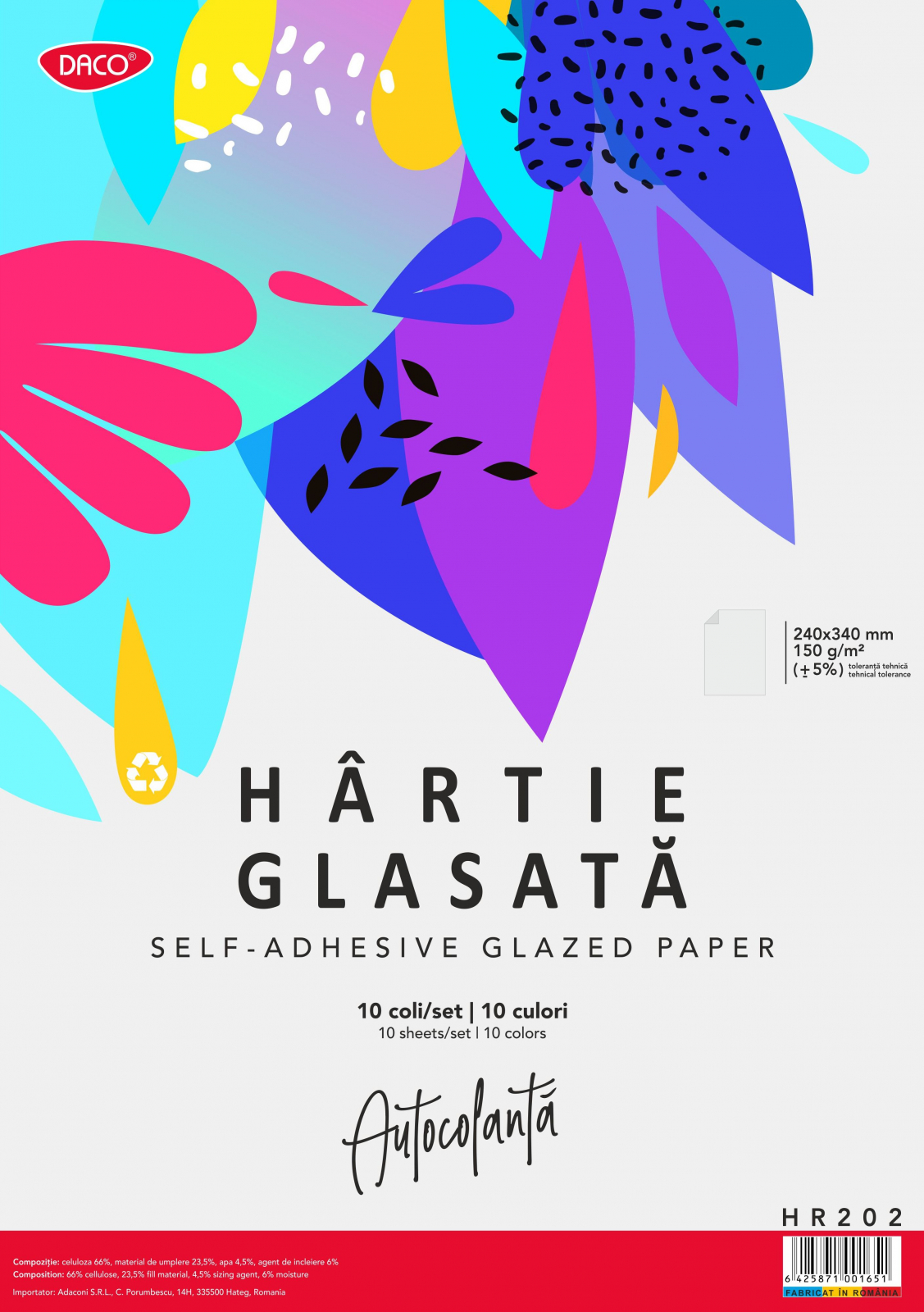 DACO HARTIE GLASATA AUTOCOLANTA 24X34CM 10 FILE/SET DACO