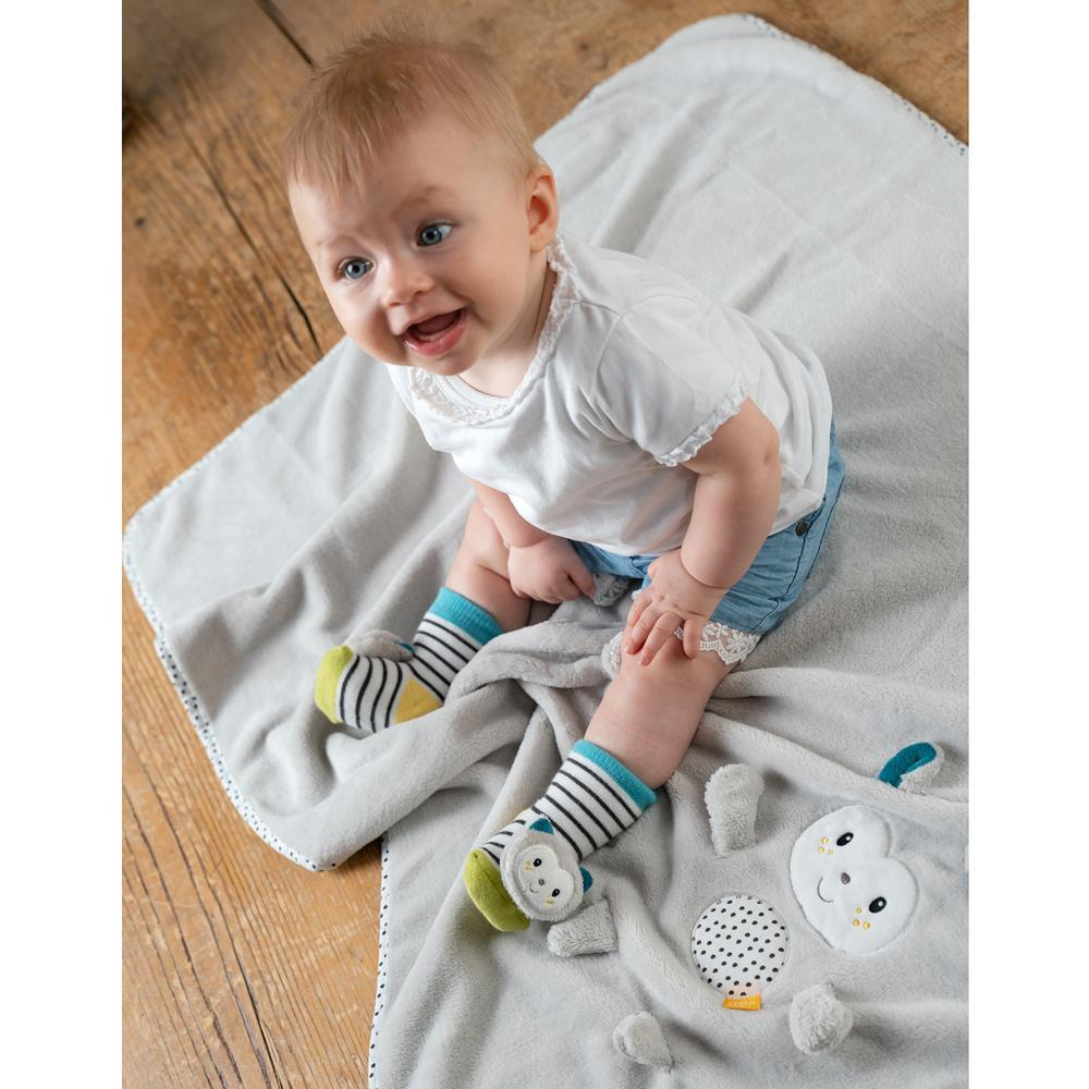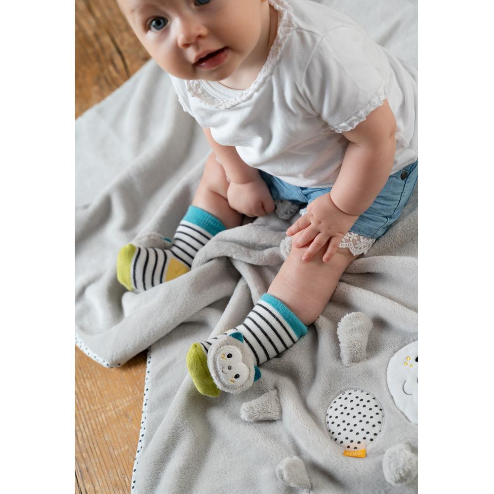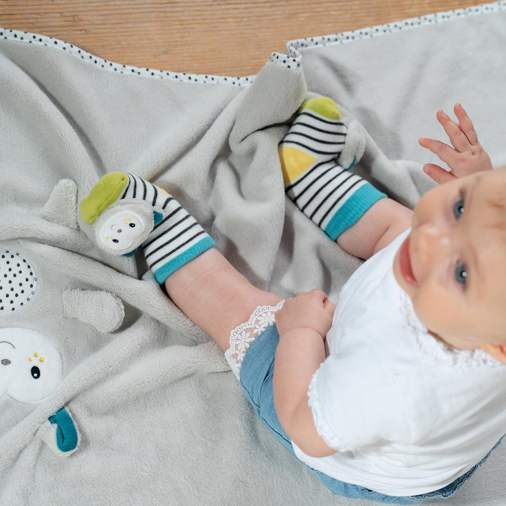 Sosetele vesele - Pisicuta Aiko & Yuki zornaie atunci cand bebelusul da din picioruse, este o jucarie educativa si distractiva care stimuleaza simturile si dezvolta coordonarea motorie a micutului