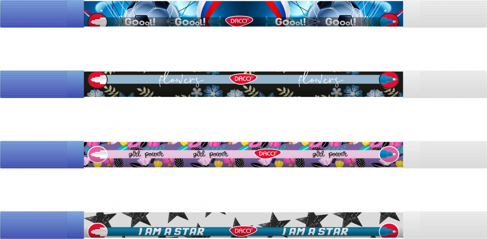 Pic rescriere Daco •  corpul din plastic, un capăt şterge cerneala, celălalt capăt scrie peste    partea ştearsă