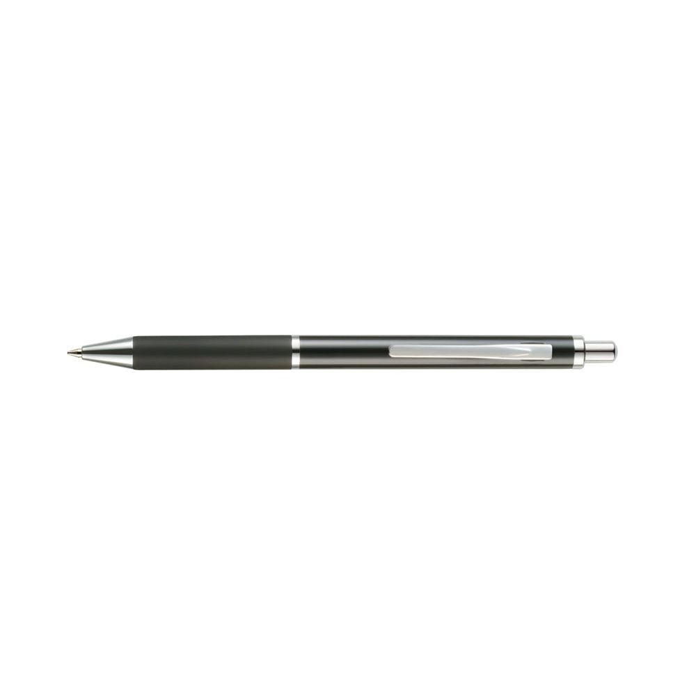 Corp din metal mat, grosime varf: 1 mm. Pix cu mecanism, mina tip Parker, culoare mina: albastru. Culoare corp: negru