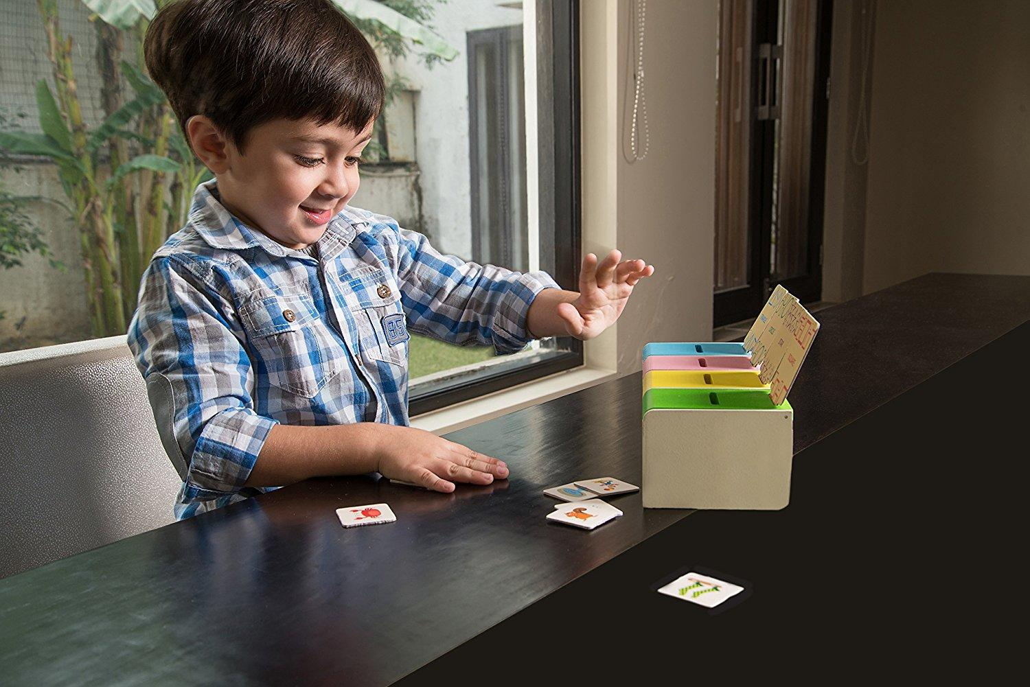 Regulament: Copiii sorteaza piesele de joc in cutii diferite, iar fiecare potrivire contribuie la dezvoltarea vocabularului. Trebuie sa puneti fiecare cartonas in cutia potrivita si sa spuneti din ce categorie face parte, in functie de eticheta din partea de sus. Apoi, cand jocul a luat sfarsit scoateti capacul fiecarei cutiute pentru a scoate cartonasele din interior. La inceputul jocului incurajati copiii sa sorteze cardurile care fac parte din categorii similare, cum ar fi; animalute de pe uscat, animalute care zboara, animalute marine si animalute de pe uscat si din apa. Treceti la combinatii de categorii, incurajand copiii sa sorteze cardurile cu animalute care zboara, obiecte care au forma rotunda, obiecte care au forma patrata si obiecte cu buline mari. Mai apoi, in nivelul 2, amestecati cartonasele de joc din mai multe categorii.