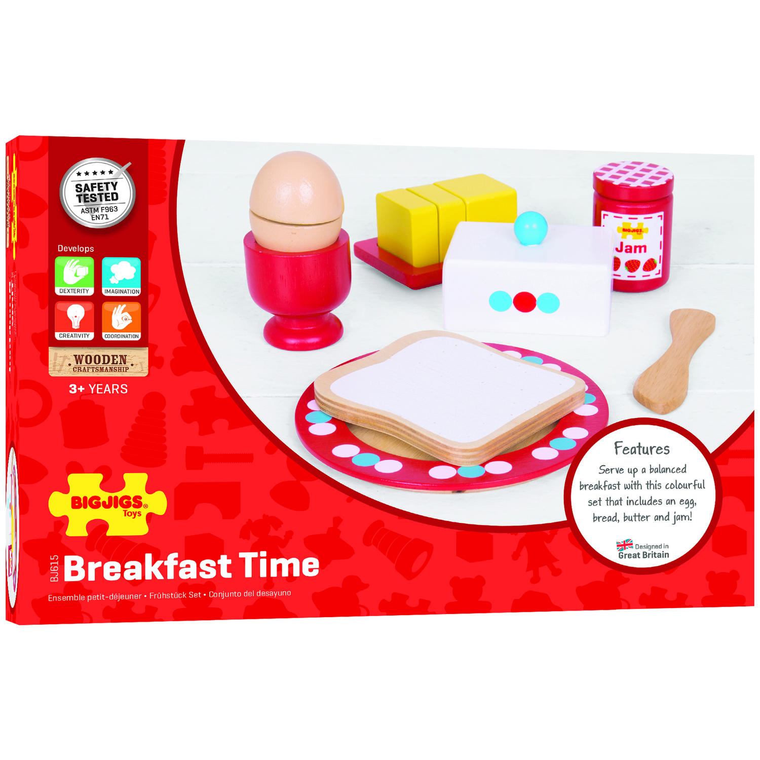 Copiii vor putea sa prepare un mic dejun delicios, cu ajutorul acestui minunat set de joaca din lemn. De acum, micul dejun va fi mult mai amuzant si mai distractiv! Cu siguranta copiii sunt incantati cand pot da o mana de ajutor in prepararea si servirea micului dejun.