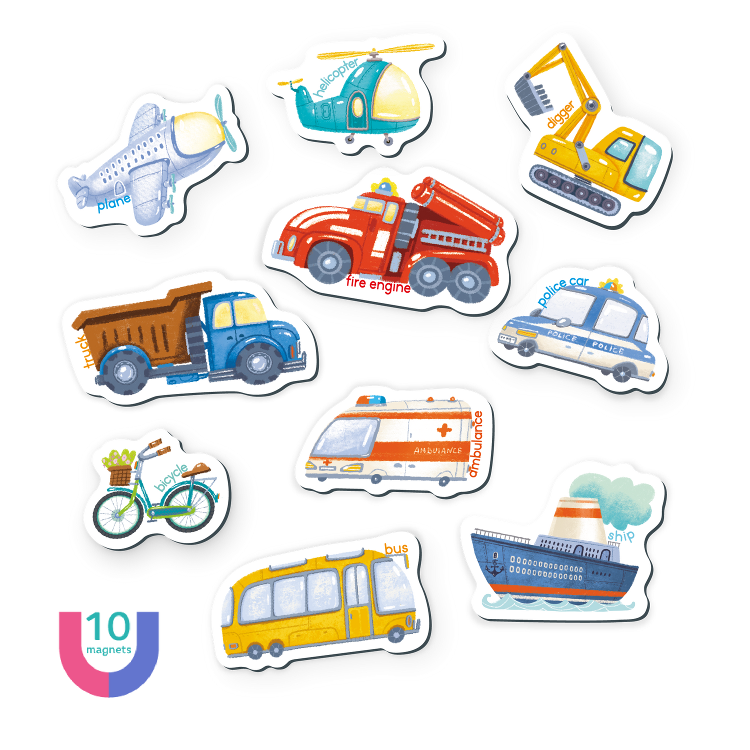 Setul include 10 piese magnetice: