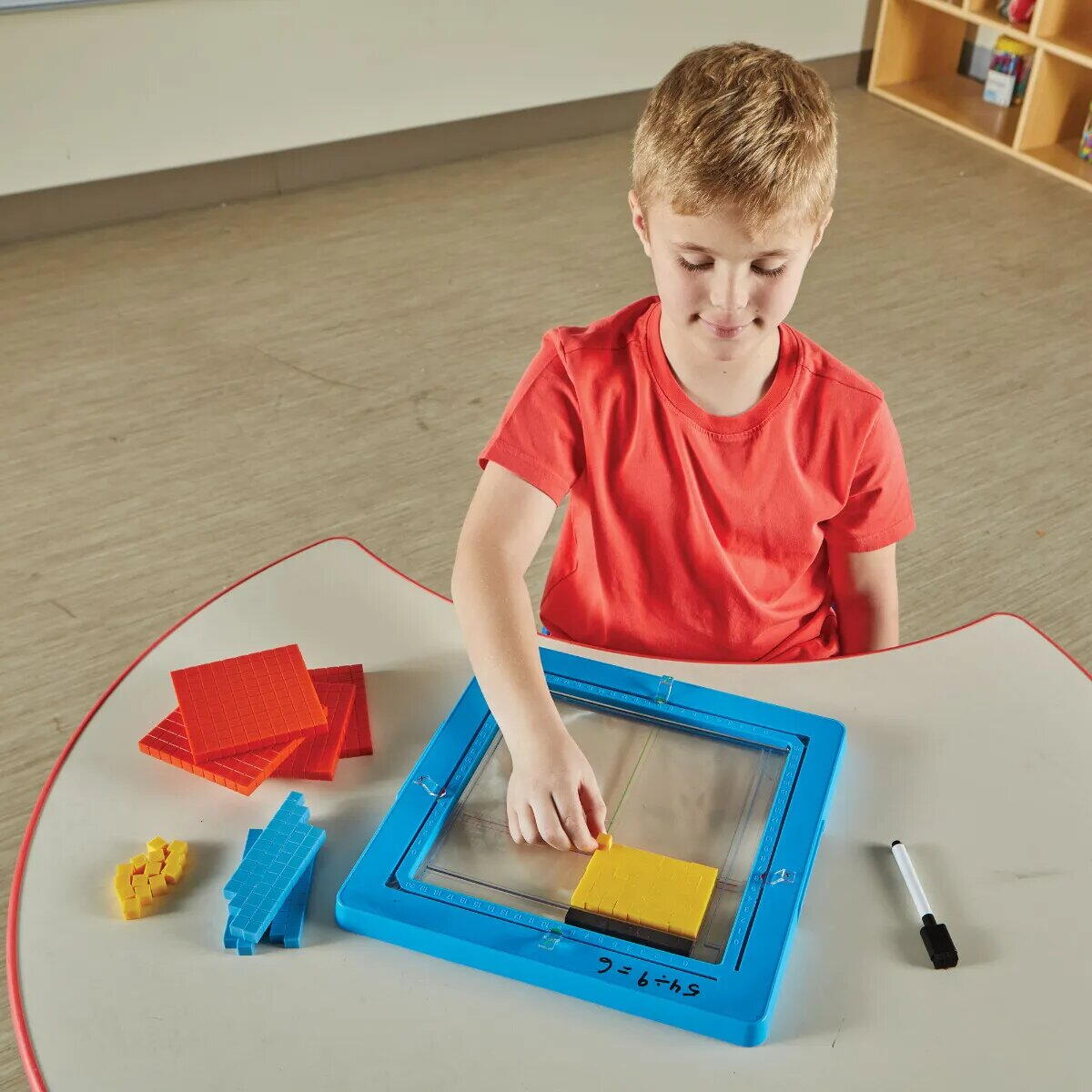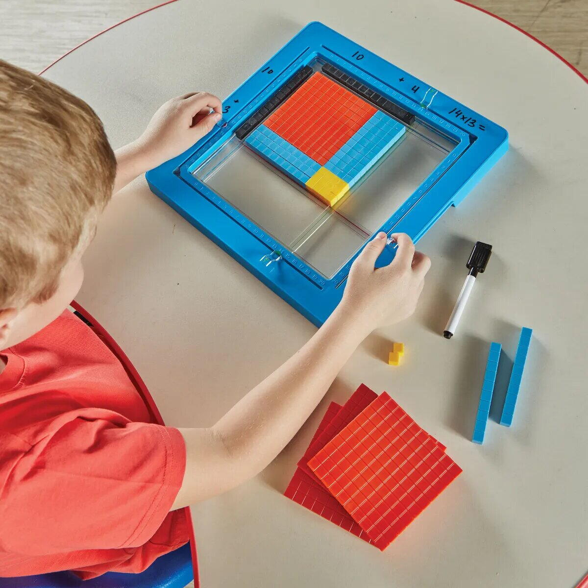 - acest set matematic este o resursa versatila pentru predarea matematicii, care ajuta elevii sa isi dezvolte constientizarea spatiala, sa inteleaga reprezentarile vizuale si sa exploreze concepte matematice precum modelele de arie si inmultirea