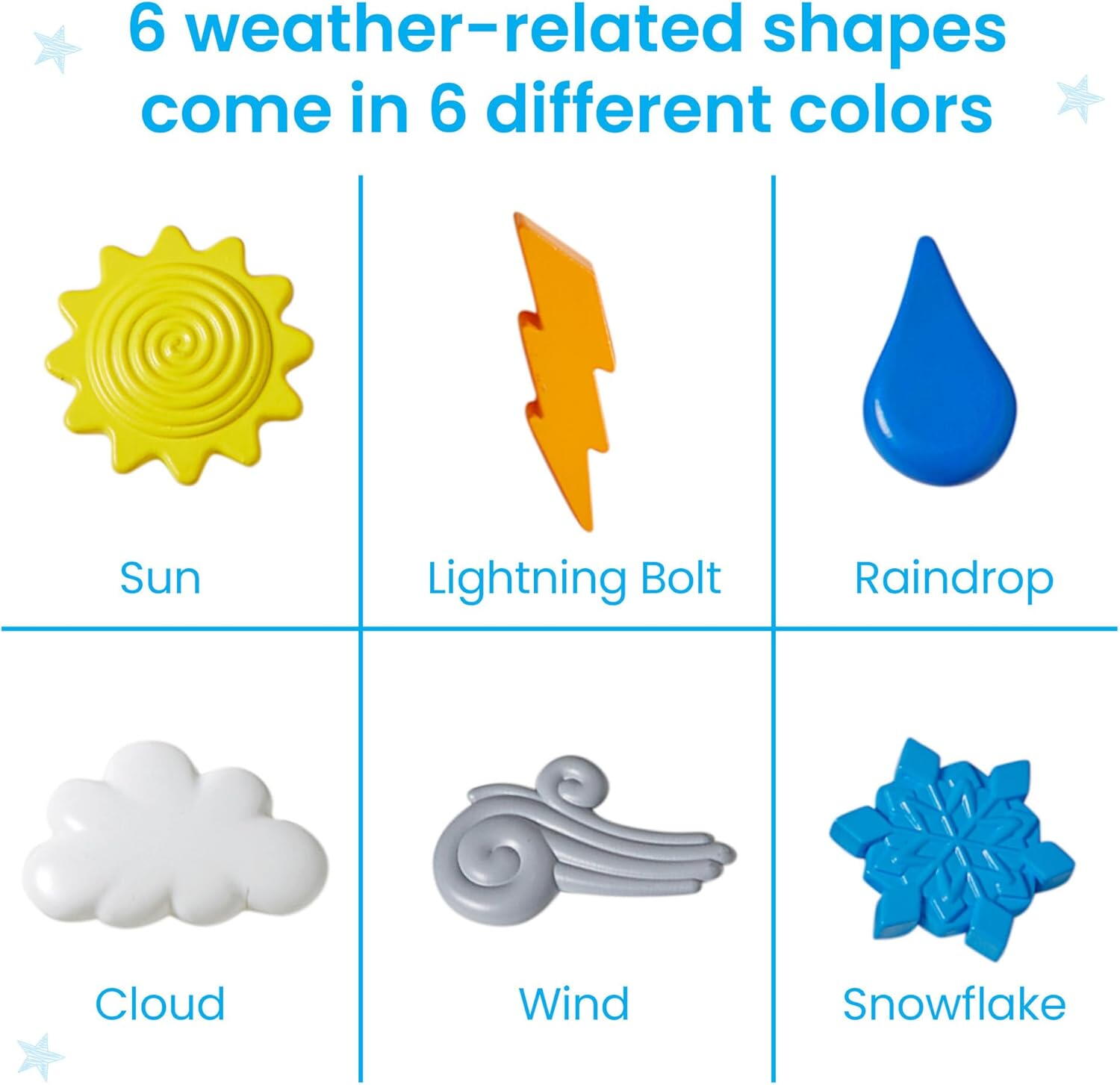 - 72 de figurine meteo in 6 forme diferite (soare, nor, fulger, picaturi de ploaie, vant si zapada)