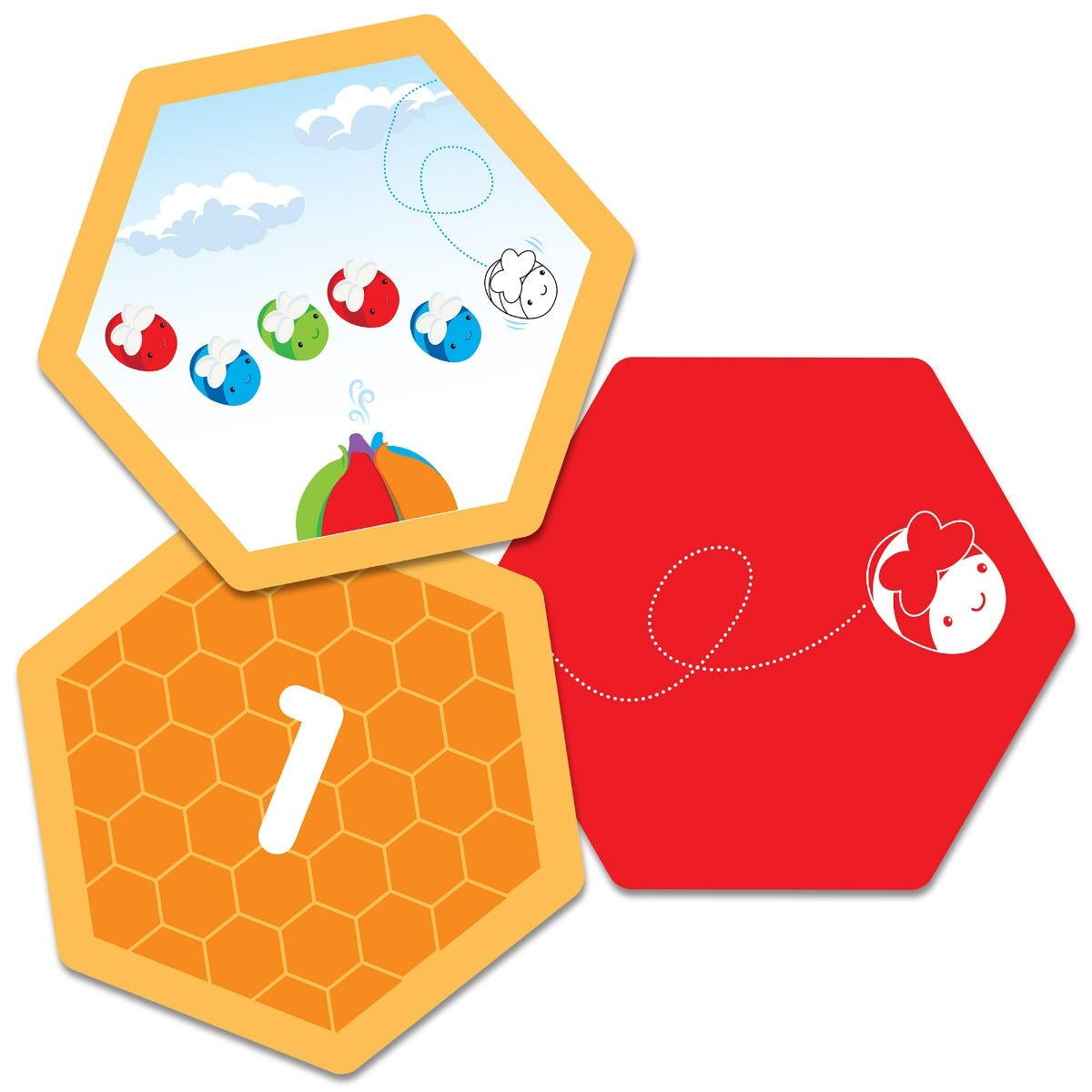 - jucaria ii va ajuta pe cei mici sa isi imbunatateasca coordonarea ochi-mana si sa recunoasca culorile si numerele in timp ce potrivesc albinele