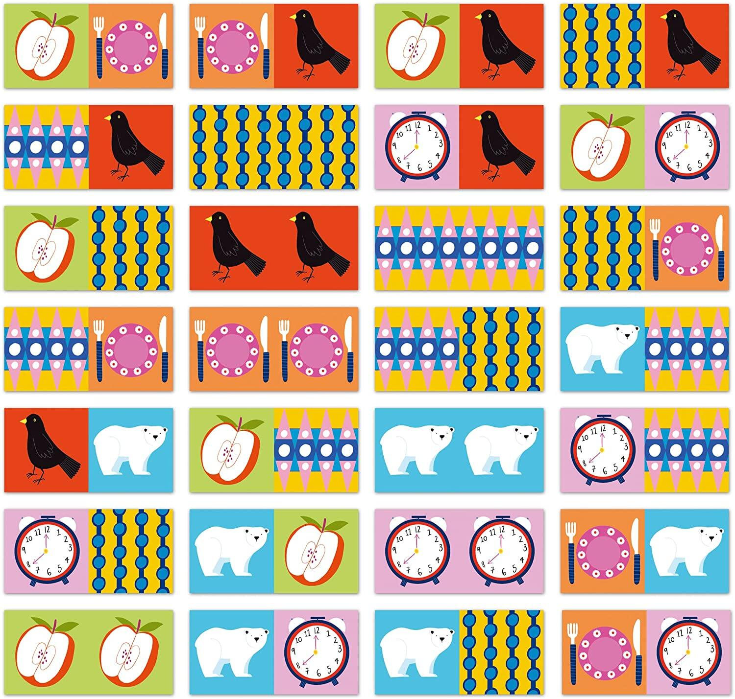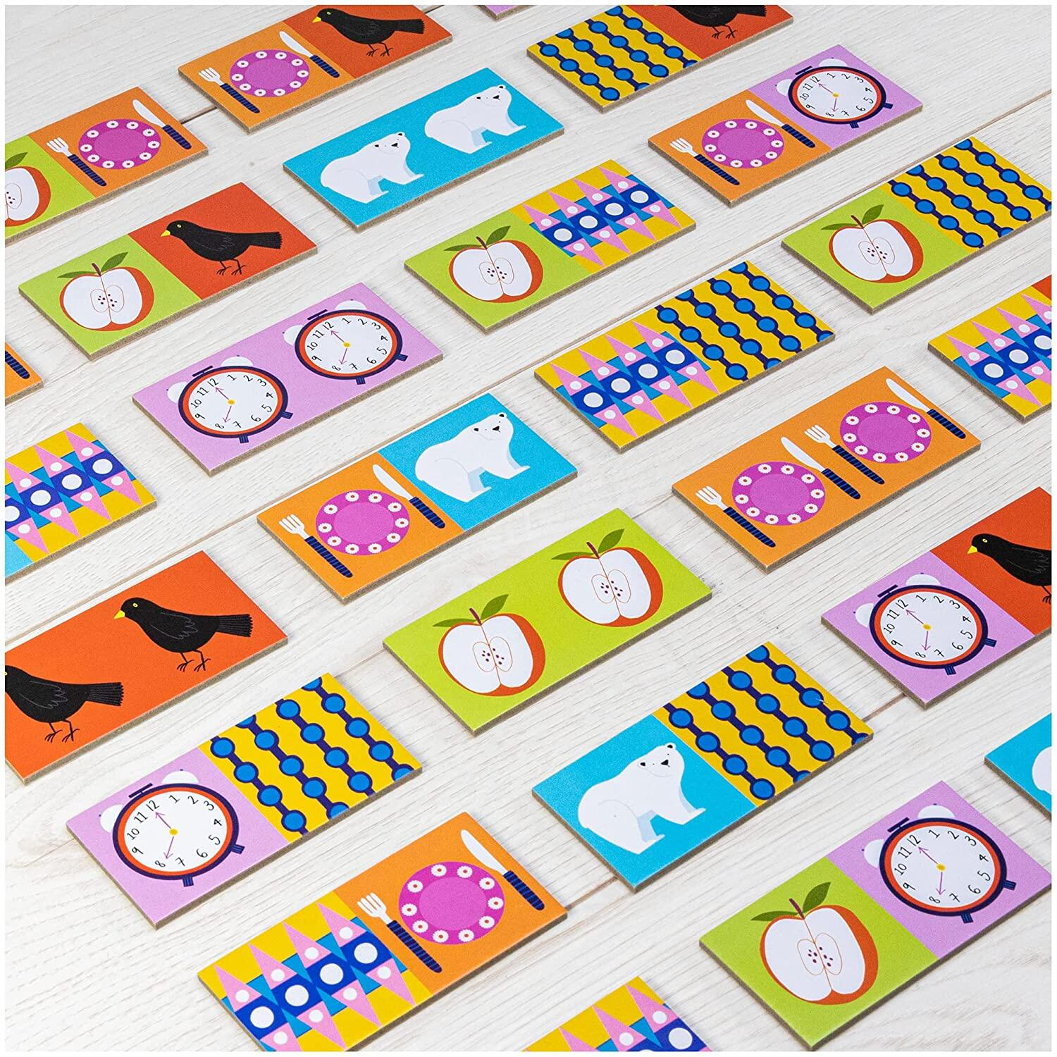 Se amesteca piesele si se asaza cu fata in jos. Jucatorii iau un numar de piese si apoi, pe rand, asaza cate o piesa pe masa, respectand urmatoarea regula: piesa introdusa in joc se asaza in prelungirea unei piese anterioare astfel incat jumatatile in contact sa fie marcate cu aceasi imagine, piesele se pot aseza si unele langa altele, respectand bineinteles acelasi principiu al dominoului. O partida se incheie cand un jucator termina toate piesele din mana sau cand nu mai poate aseza nimeni nici o piesa, astfel castigatorul este cel care a ramas cu cele mai putine piese in mana.