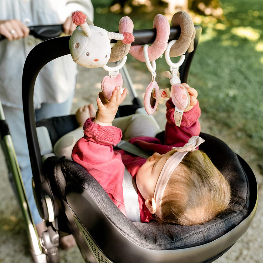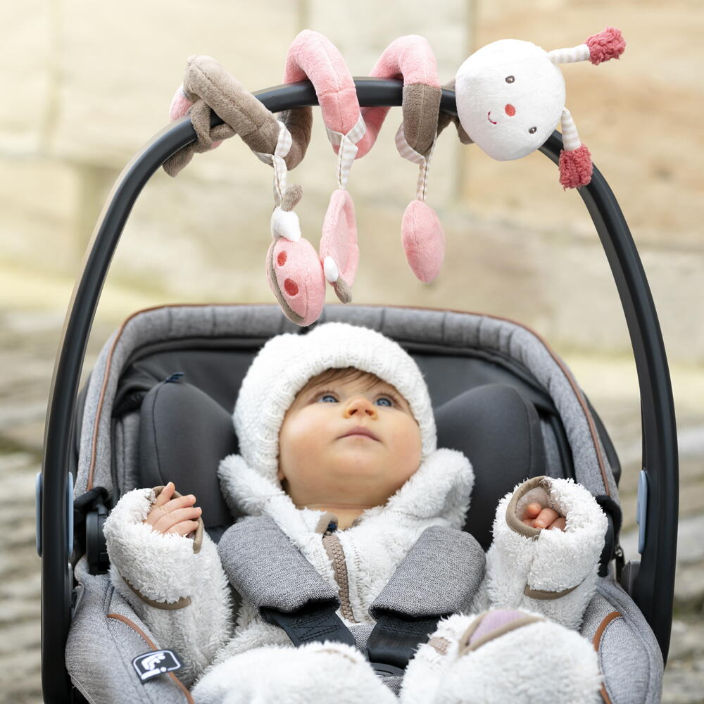 • spirala de plus poate fi prinsa extrem de usor la patutul copilului, la carucior sau chiar in masina, albinuta insotindu-l astfel pretutindeni