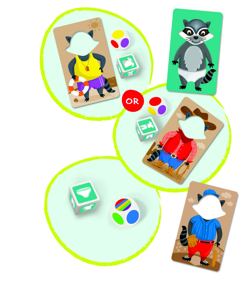 Instructiuni de joc: Jucatorul arunca cu fiecare zar dintre cele doua, pentru culoare si pentru costum. In functie de zaruri, trebuie sa aleaga cardul care se potriveste. El plaseaza cardul ales pe raton. Jucatorul trebuie sa se uite si dupa lenjeria de corp, astfel va pierde toate costumele. Primul jucatorul care aduna 5 costume diferite castiga.