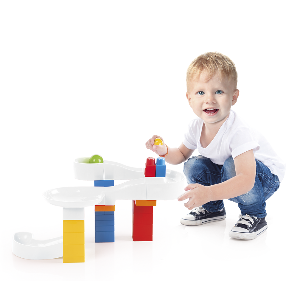 Acest joc captivant este perfect pentru micutii care vor sa-si dezvolte indemanarea si coordonarea ochi-mana! Construieste un labirint din cuburi si piste si urmareste bilele cum se lanseaza intr-o cursa plina de adrenalina. Care dintre ele va ajunge prima la linia de sosire? Aventura si distractia sunt garantate!