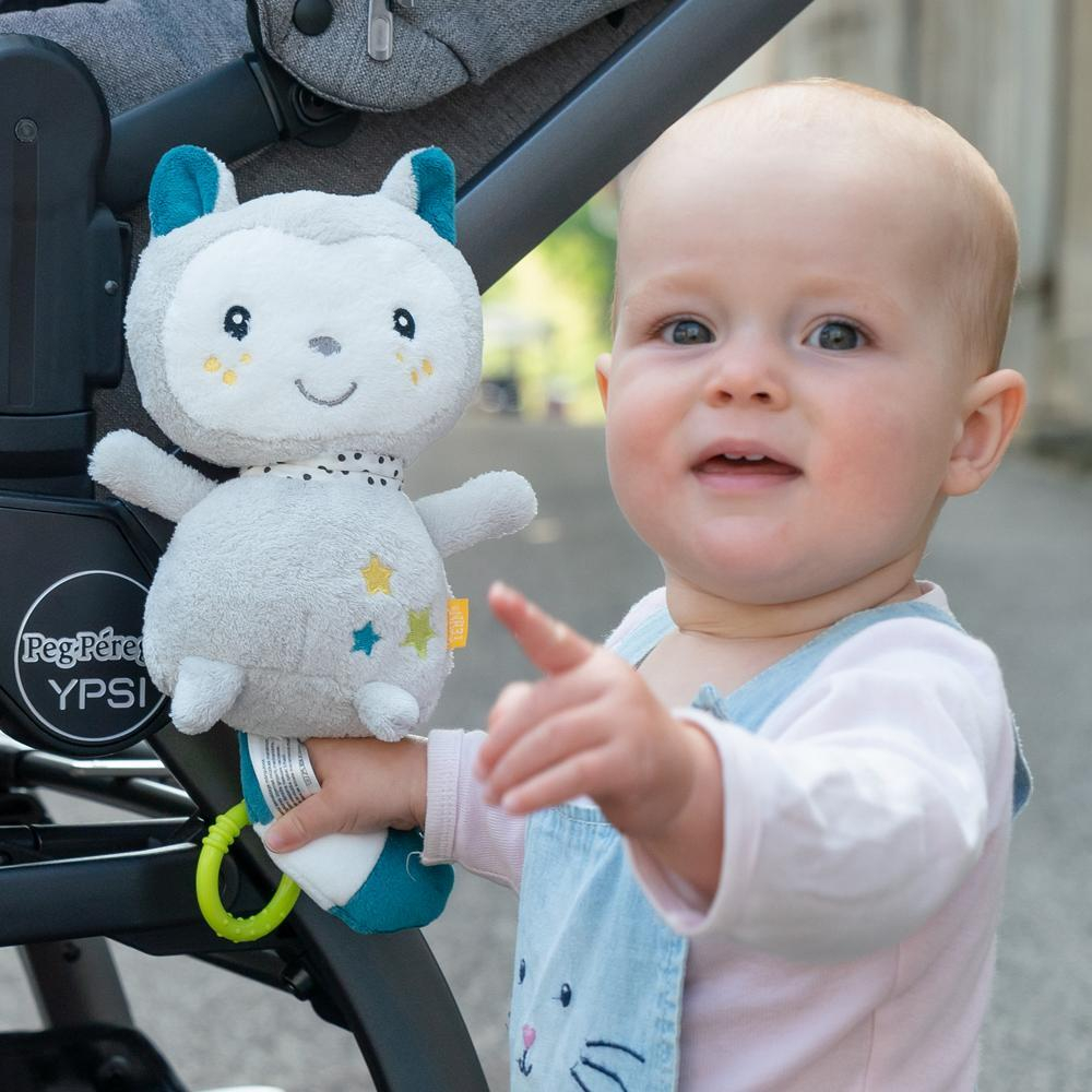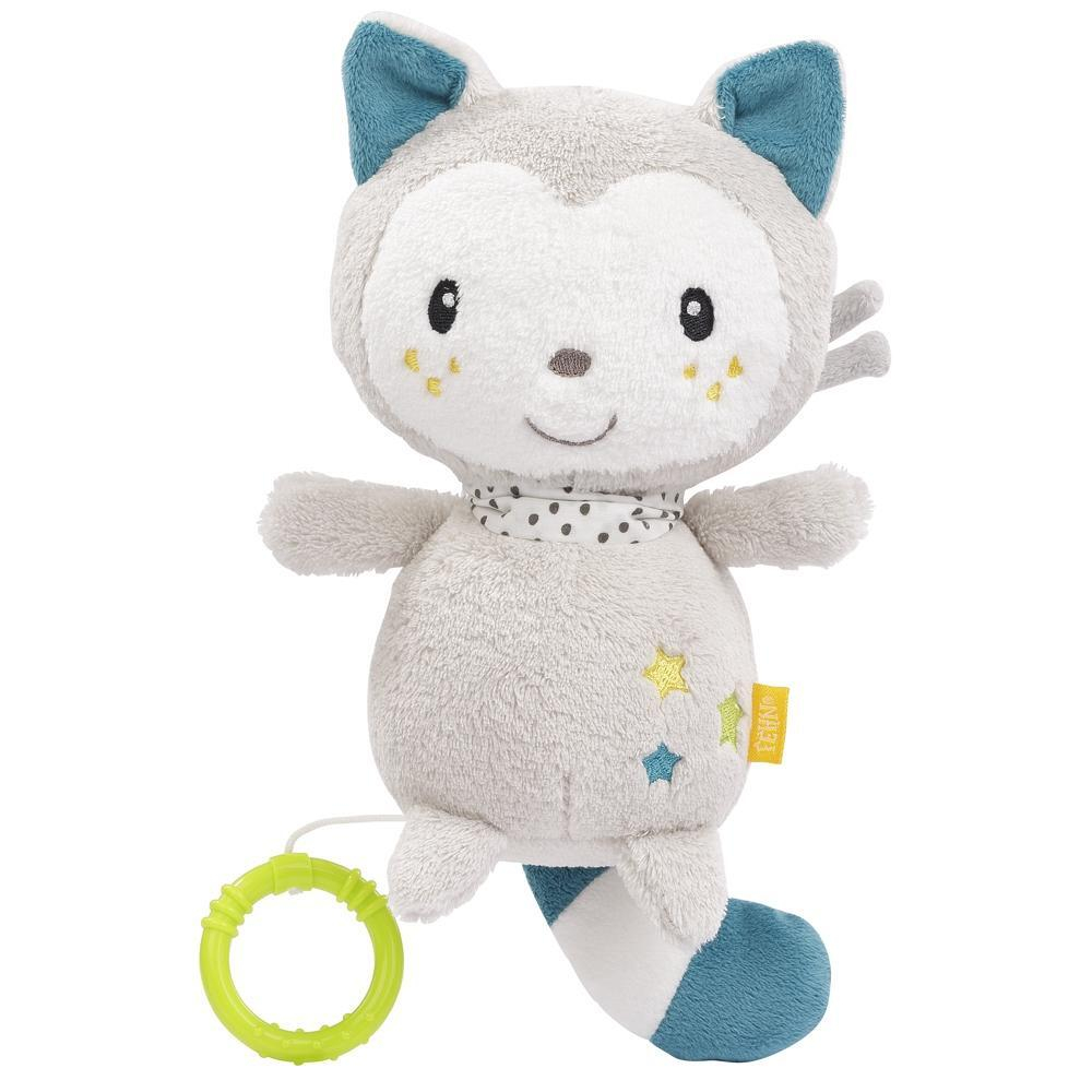 Simpatica pisica ii va face cunostinta micutului tau cu sunetele inca din primele zile de viata. Textura deosebit de moale si culorile pastelate completeaza farmecul animalutului.