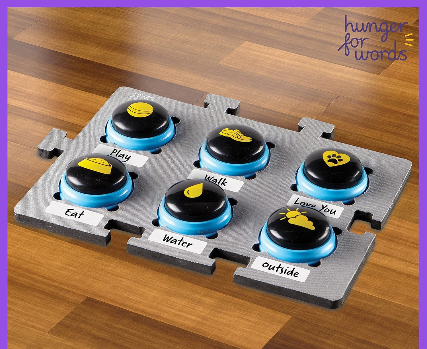 Jucaria "Hunger for words - Covoras pentru sonerii dresaj catel" este un accesoriu esential pentru dresajul cainilor. Consecventa este cheia succesului in procesul de antrenament, iar acest covoras va ajuta sa pastrati in ordine si la indemana soneriile pentru dresaj ale catelului dumneavoastra.