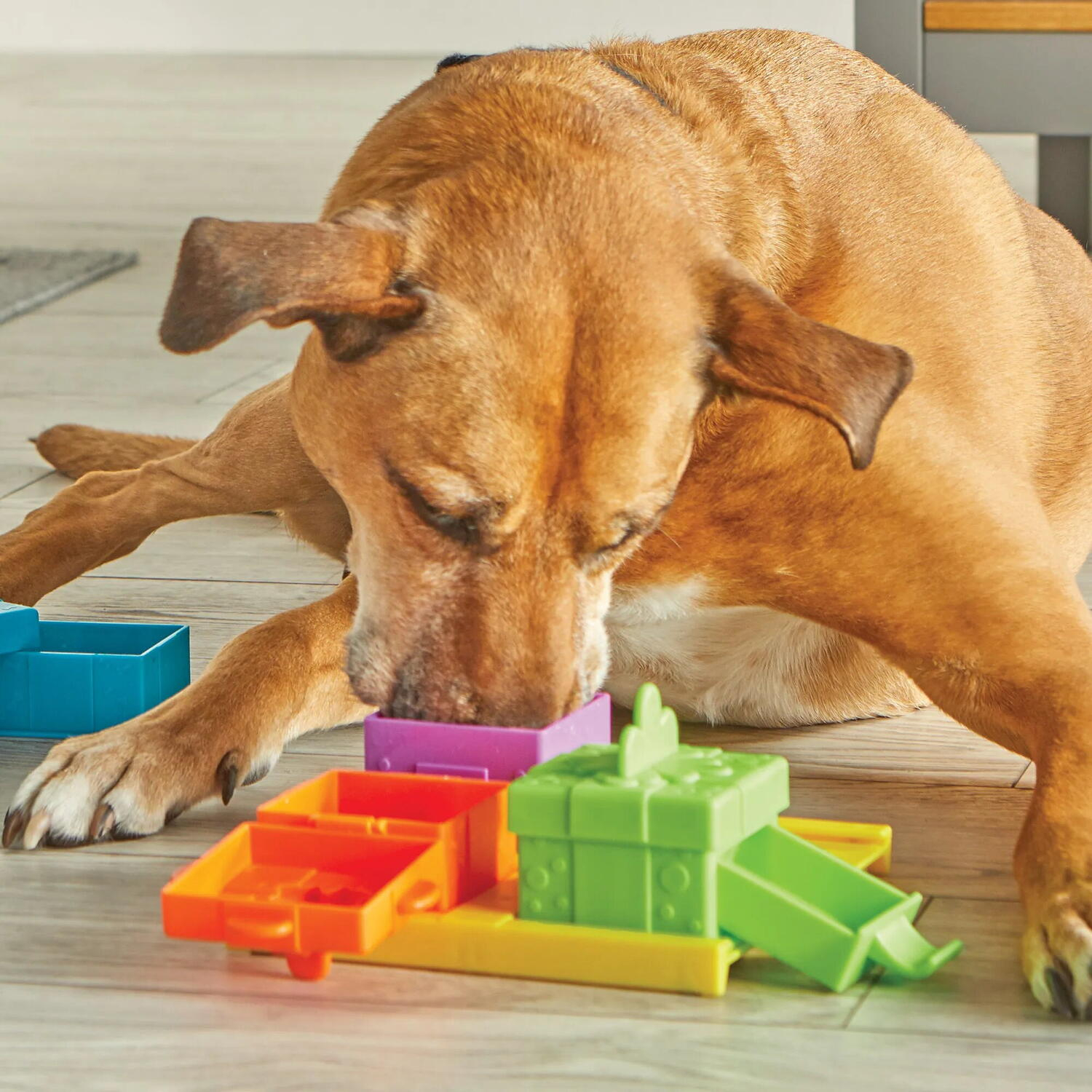 - cainii isi folosesc creierul si labutele pentru a elibera recompensele si a se distra cu aceste cutiute colorate pline de surprize
