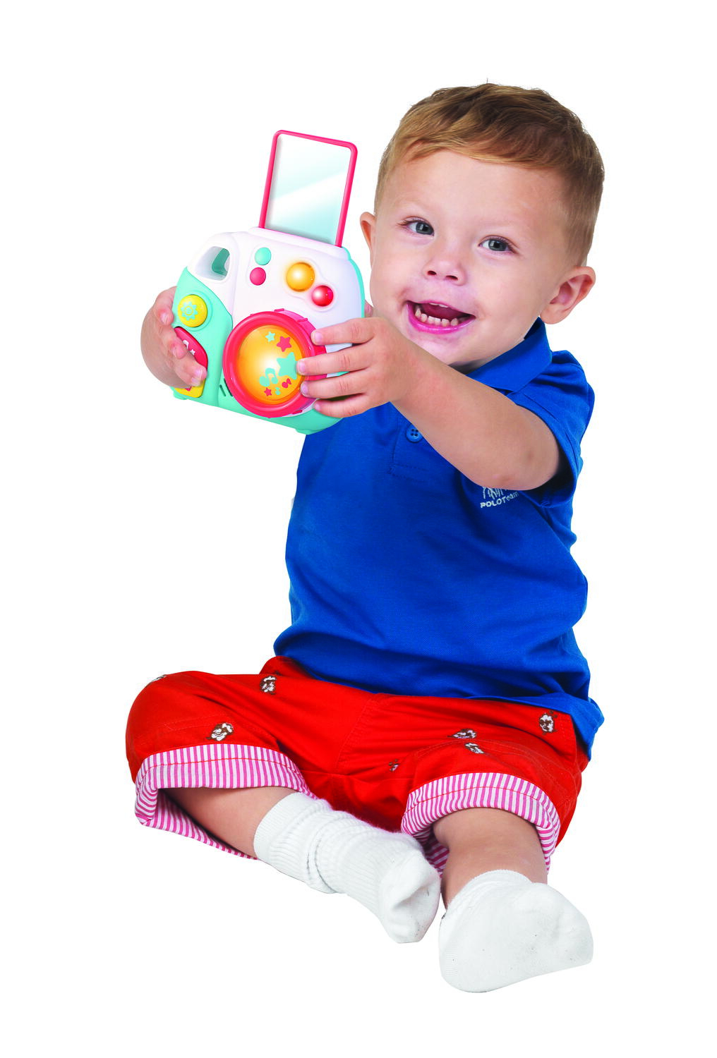 Simpaticul aparat foto este jucaria ideala pentru stimularea imaginatiei celor mici!
