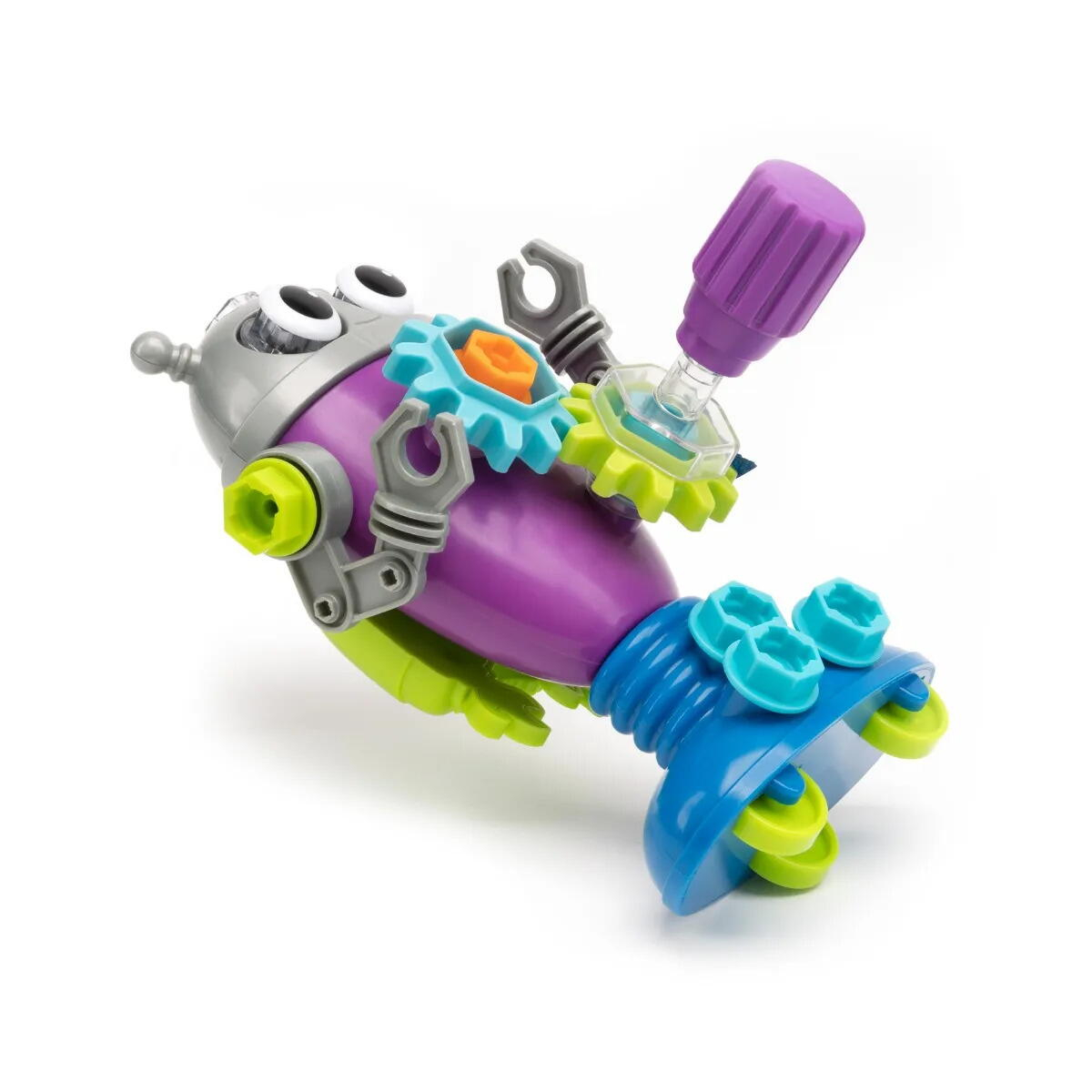 - Fiecare constructie este un nou proiect: alege piese, foloseste uneltele incluse pentru a le fixa, personalizeaza cu autocolante, apoi demonteaza si incepe din nou