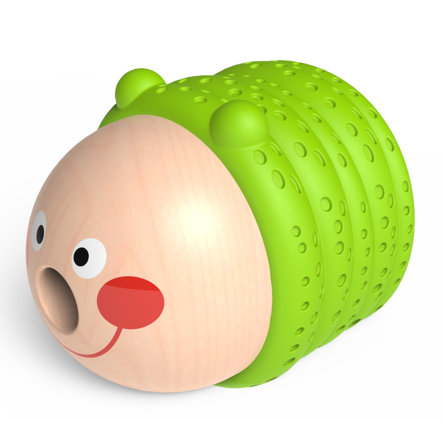 - poate fi folosita ca jucarie de snuruit pentru dezvoltarea abilitatilor motrice si a gandirii logice – toate componentele omidutei au orificii prin care copilul va trece siretul inclus, snuruind incet, incet, toate piesele pana cand omida va fi completa