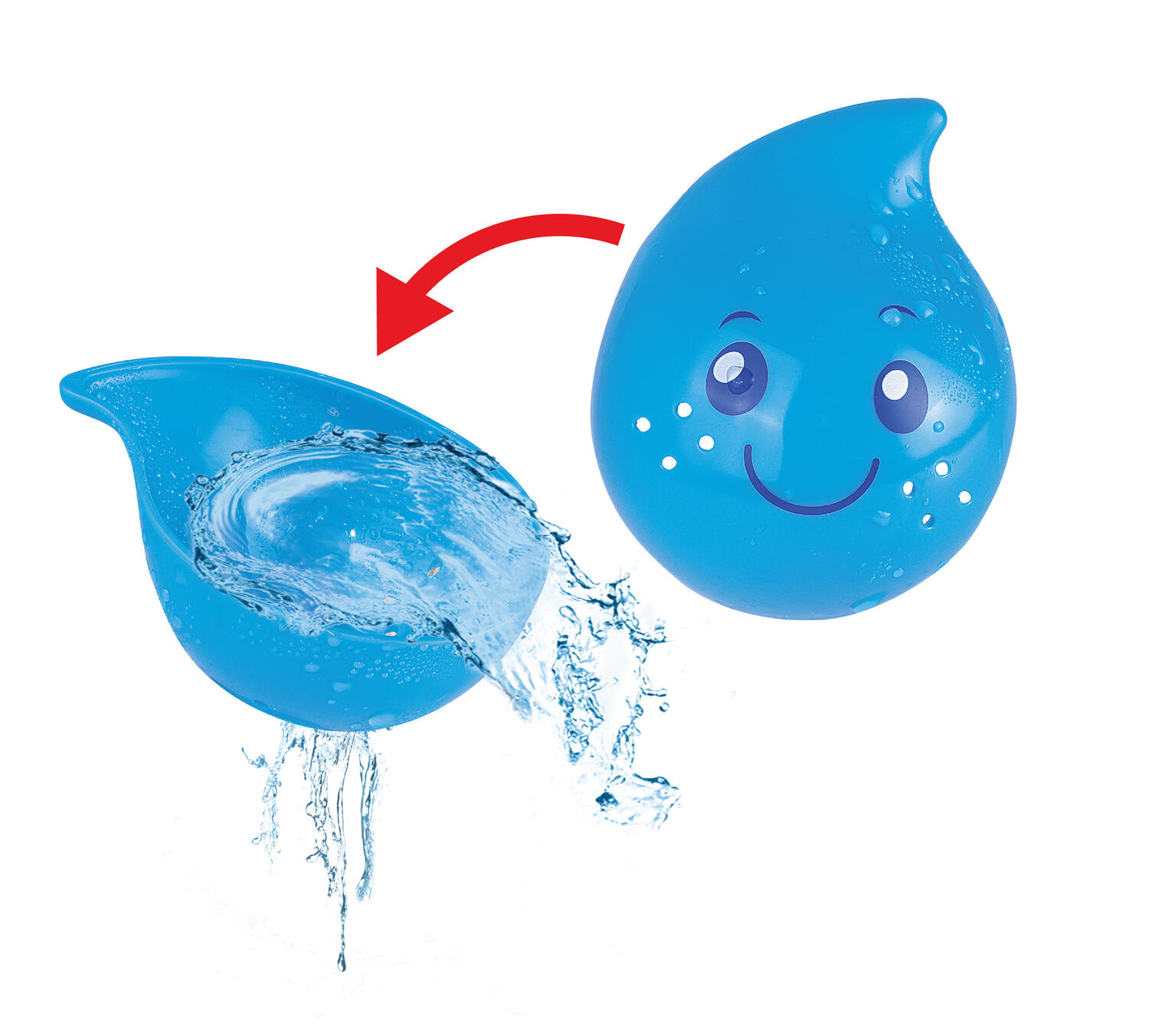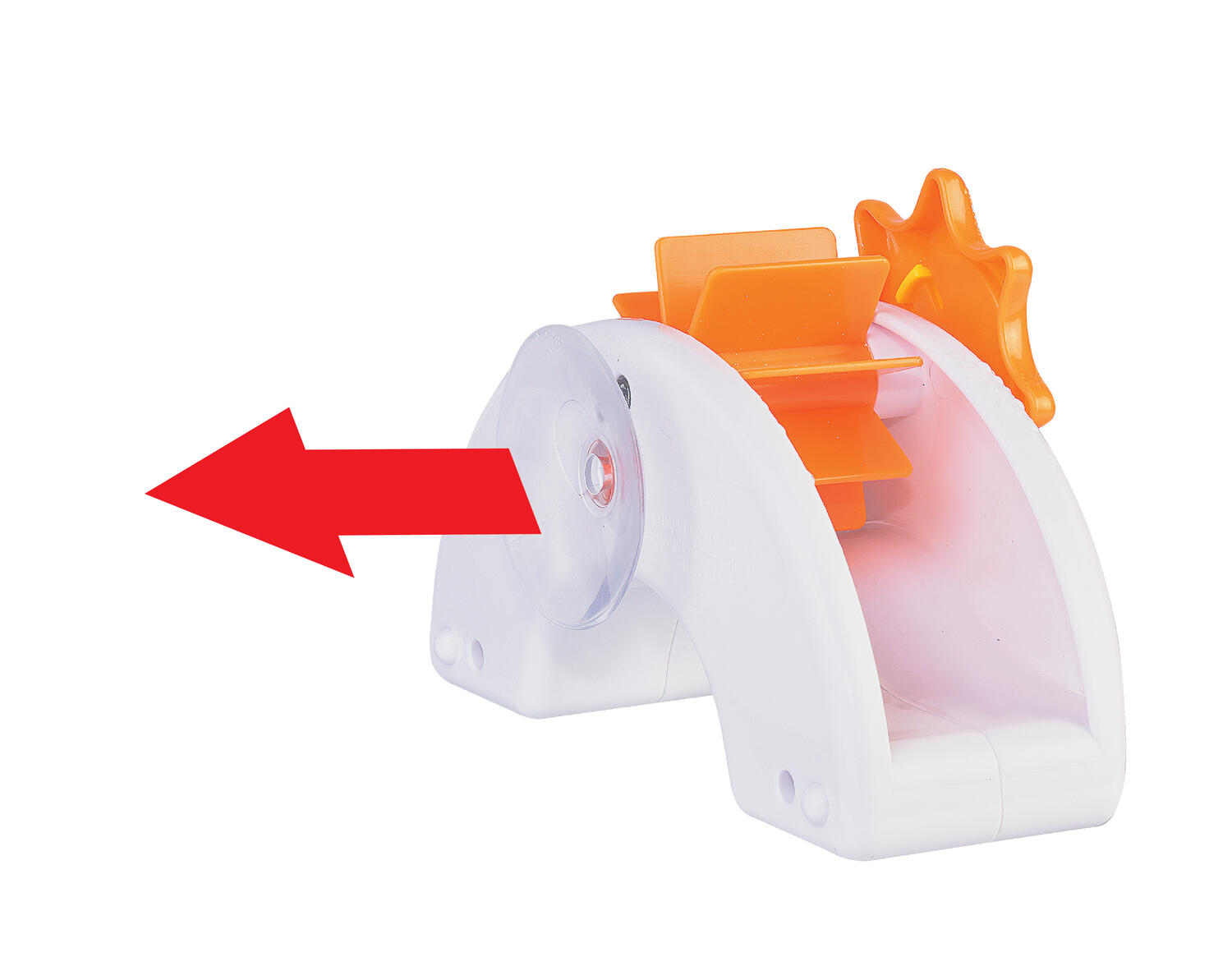 Ataseaza jucaria cu usurinta pe peretii din baie, multumita ventuzelor. Apoi, da nastere unei cascade in timp ce torni apa peste elementele meteorologice. Priveste ce rapid se invarte morisca cand curge apa peste ea!
