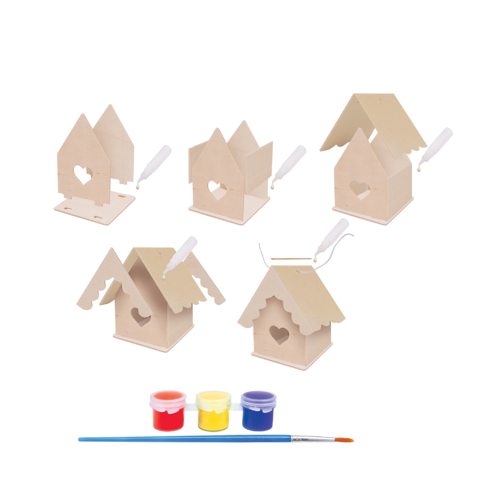 • le permite copiilor sa isi construiasca si sa picteze propriile casute pentru pasari, stimuland creativitatea, abilitatile motorii fine si interesul pentru natura