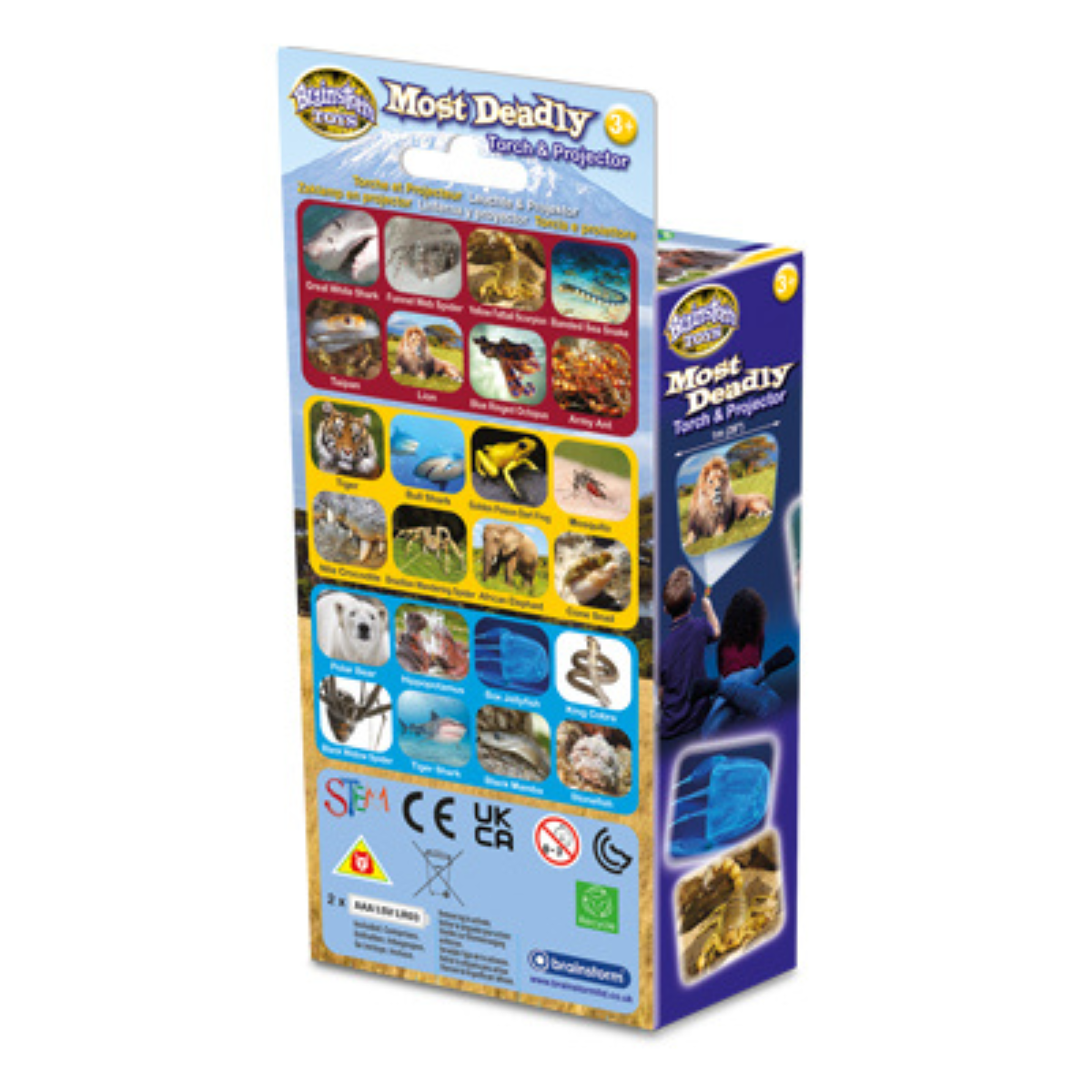 - include trei discuri tip diapozitiv cu 24 de imagini spectaculoase ce infatiseaza cele mai periculoase animale din lume – de la pradatori fiorosi si serpi veninosi, pana la insecte letale si creaturi marine impresionante