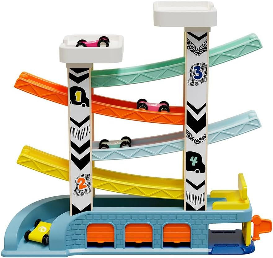 Rampa cu 4 masinute de curse este un joc de curse captivant pentru copii care ajuta la dezvoltarea unor abilitati importante, precum agilitatea, concentrarea si dexteritatea. Acest set include o benzinarie functionala, un atelier de reparatii si trei parcari, unde copiii pot conduce masinile lor de la o rampa la alta.