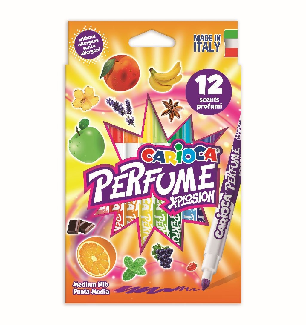 Carioca 12 culori parfumate Carioca•  carioca pe bază de apă•  cerneală parfumată•  permite și trasarea de linii groase