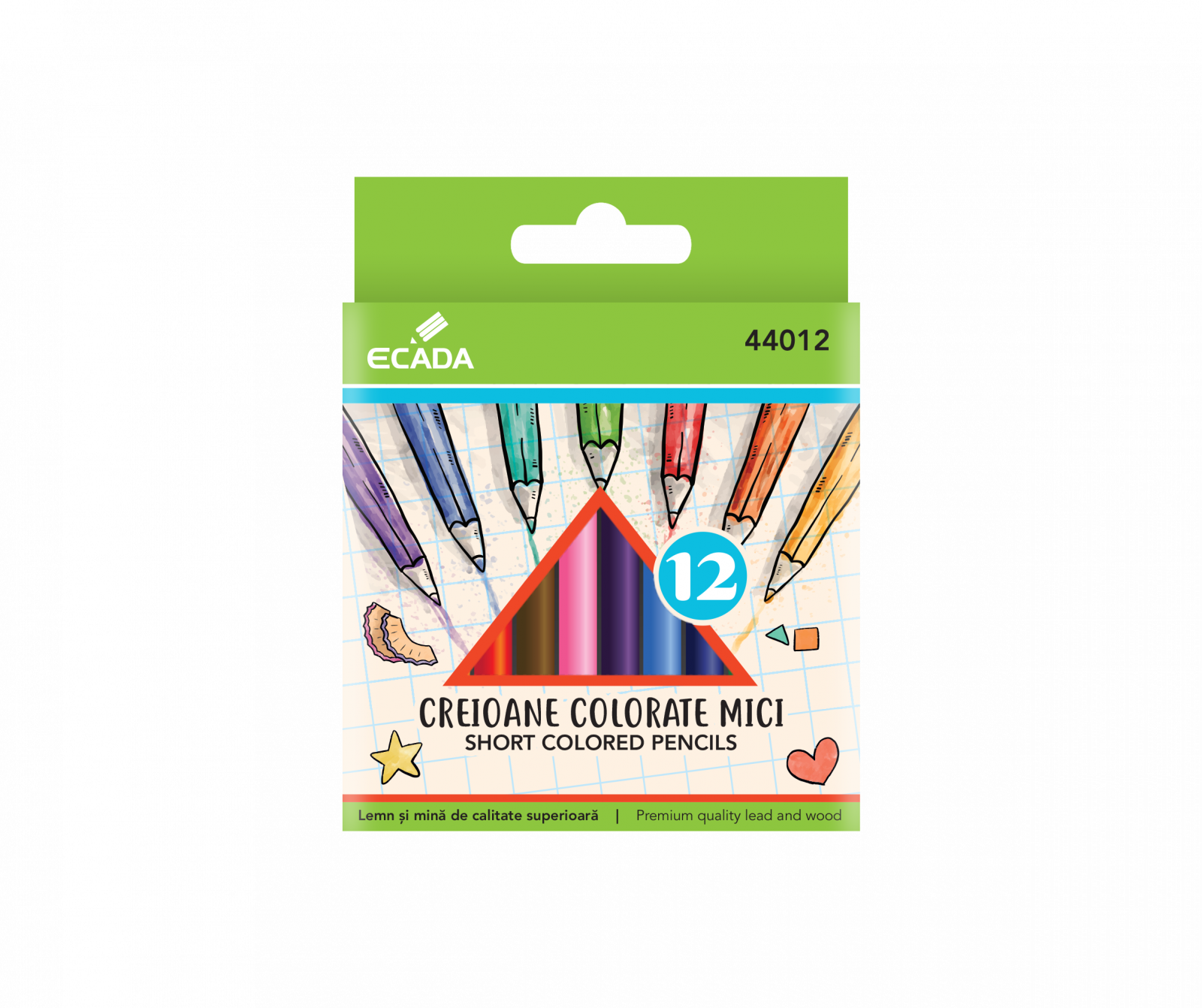 Creion color 12 culori mici Ecada•  12 culori, corp hexagonal, diametru mină: 2,7 mm•  nu conțin lemn din pădurile tropicale