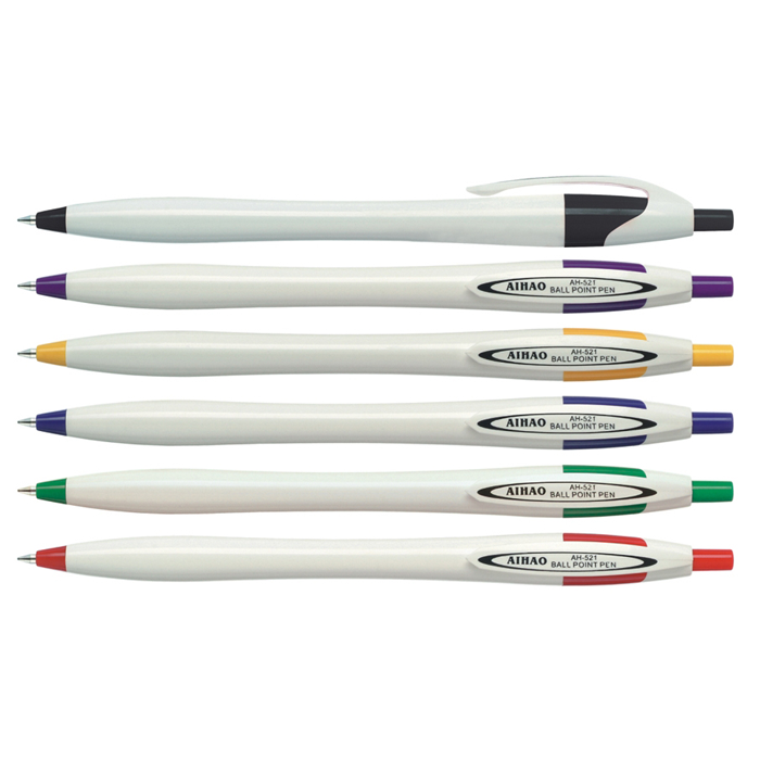 Pix Aihao 521•  corp din plastic mat, grosime vârf: 0,7 mm•  pix cu mecanism•  culoare mină: albastru