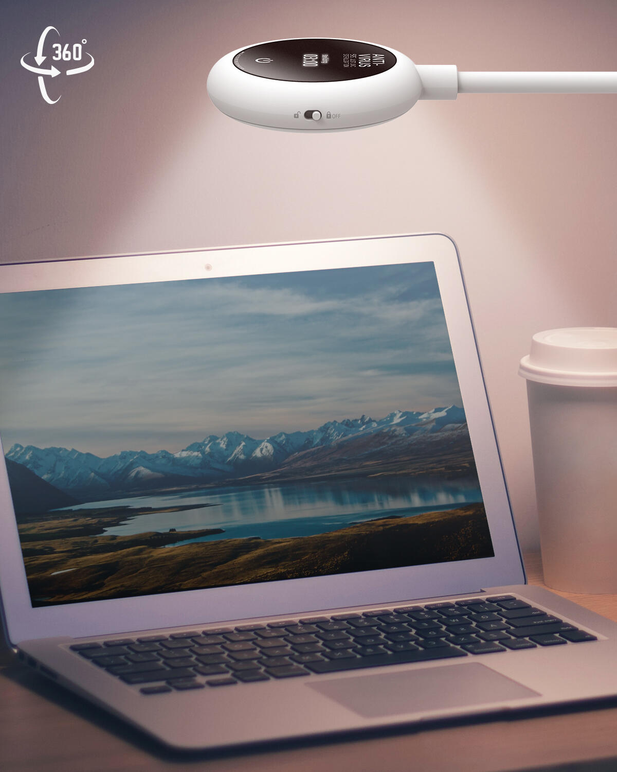 - sterilizator 2 in 1: sterilizeaza (5 led-uri UVC puternice) si ilumineaza (12 led-uri cu lumina alba)